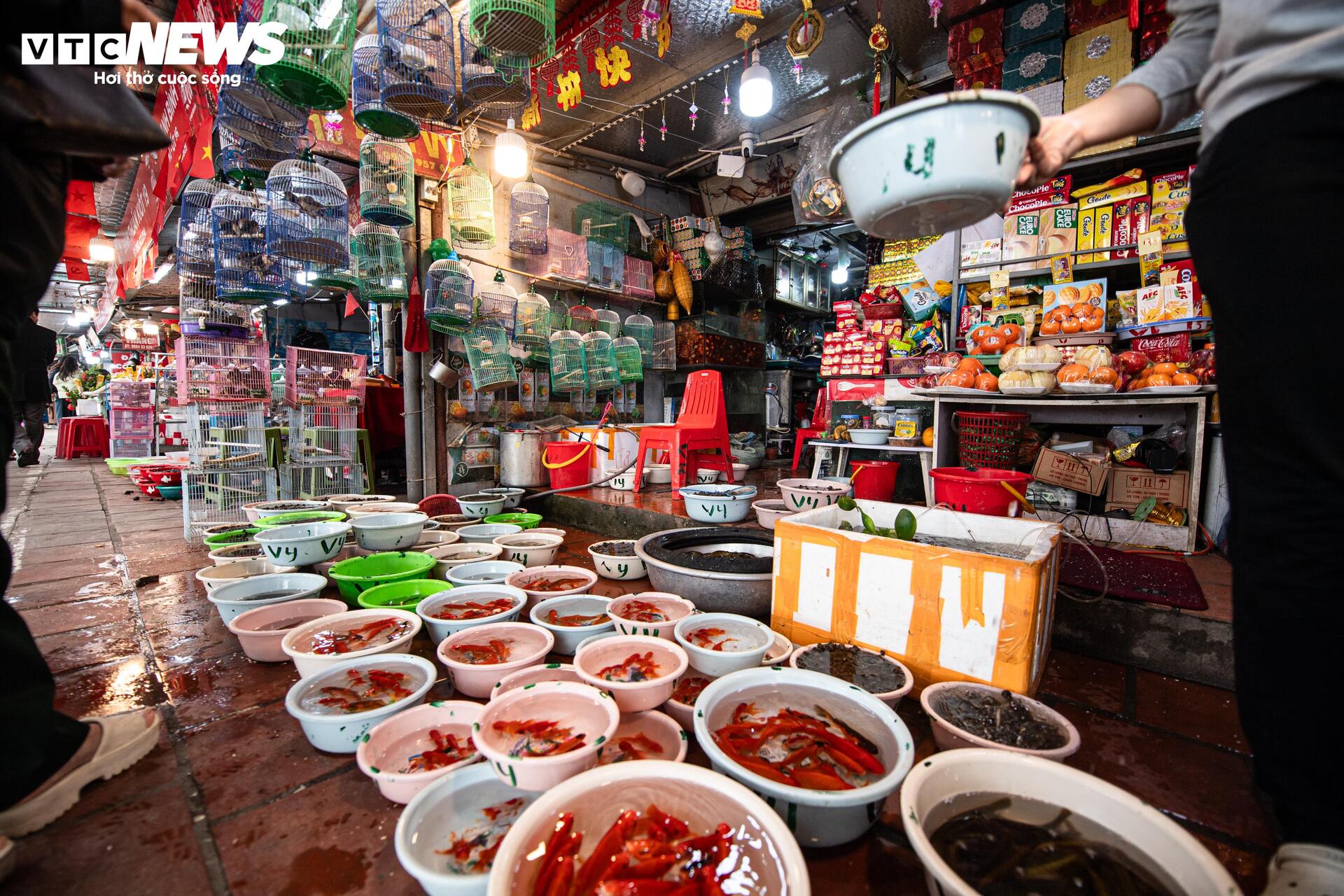 Dịch vụ bán ốc, cá phóng sinh cũng rất đắt khách trong dịp này. Các chậu hàng luôn được bổ sung để phục vụ nhu cầu của người đi lễ. Mỗi chậu có giá khoảng 30.000 - 150.000 đồng.