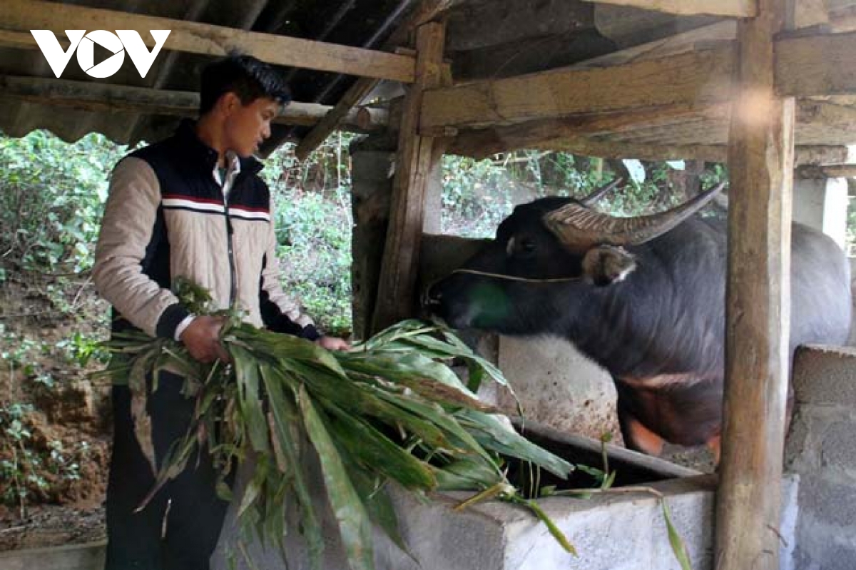 Người dân vùng cao Lai Châu bổ sung lượng thức ăn thô xanh và thức ăn tinh cho đàn gia súc để tăng sức để kháng