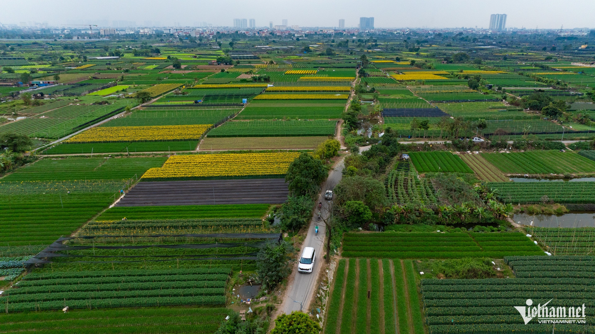 Những con đường quanh làng dịp này nhộn nhịp khi người dân tất bật thu hoạch hoa để mang ra chợ.