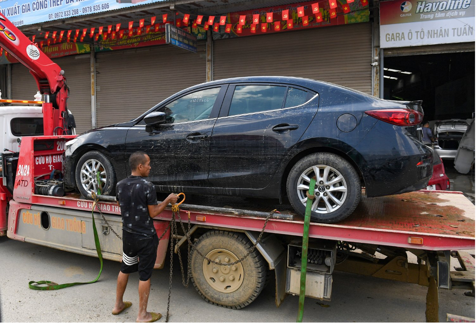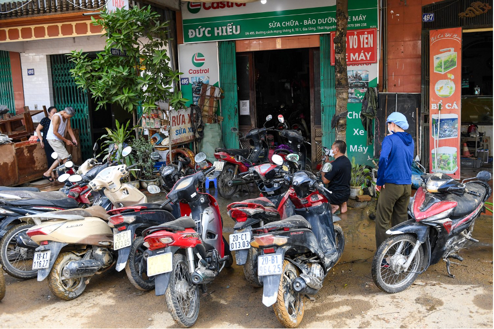Các cửa hàng sửa chữa luôn trong tình trạng chật kín do lượng xe ngập nước quá nhiều