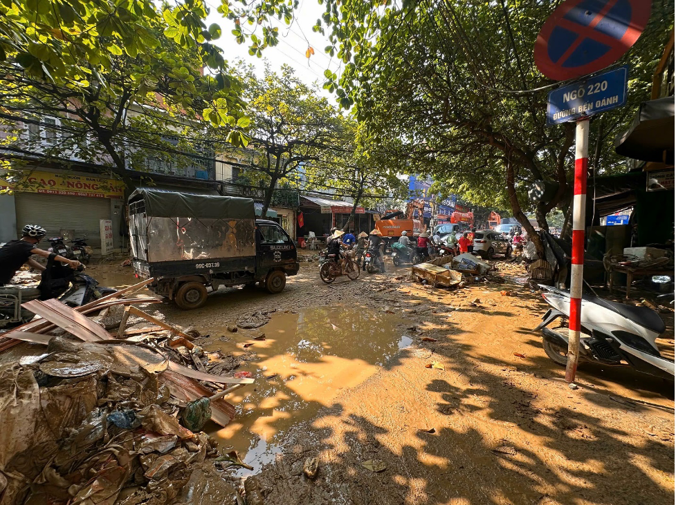 Sau khi nước rút, tài sản, đồ đạc của người dân nằm la liệt cùng bùn, rác
