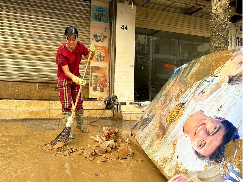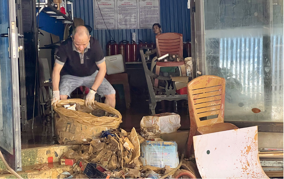 Người dân vất vả dọn dẹp rác thải và bùn đất
