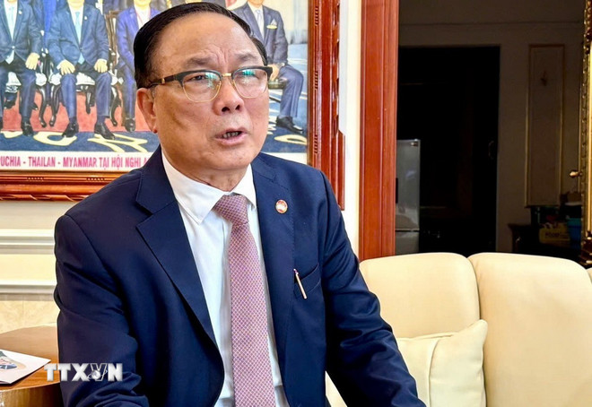 Giáo sư, tiến sỹ Nguyễn Văn Đệ, Chủ tịch Hội đồng Quản trị Tổng Công ty Cổ phần Hợp Lực, Chủ tịch Hiệp hội Y tế tư nhân Việt Nam cho rằng Đảng bộ tỉnh Thanh Hóa nhiệm kỳ 2025-2030 cần tạo môi trường cho doanh nghiệp phát triển. (Ảnh: Việt Hoàng/TTXVN)