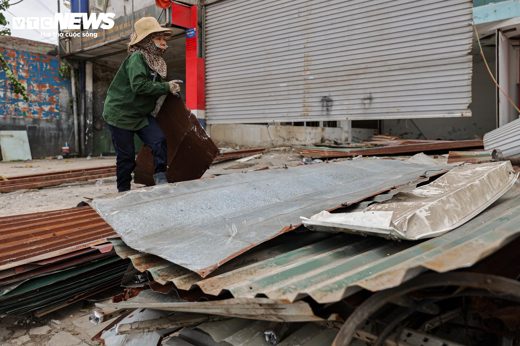 Nhiều công nhân thu mua phế liệu cũng nhanh chóng có mặt tại hiện trường, tiến hành thu gom và tận dụng các vật liệu còn lại sau quá trình tháo dỡ.