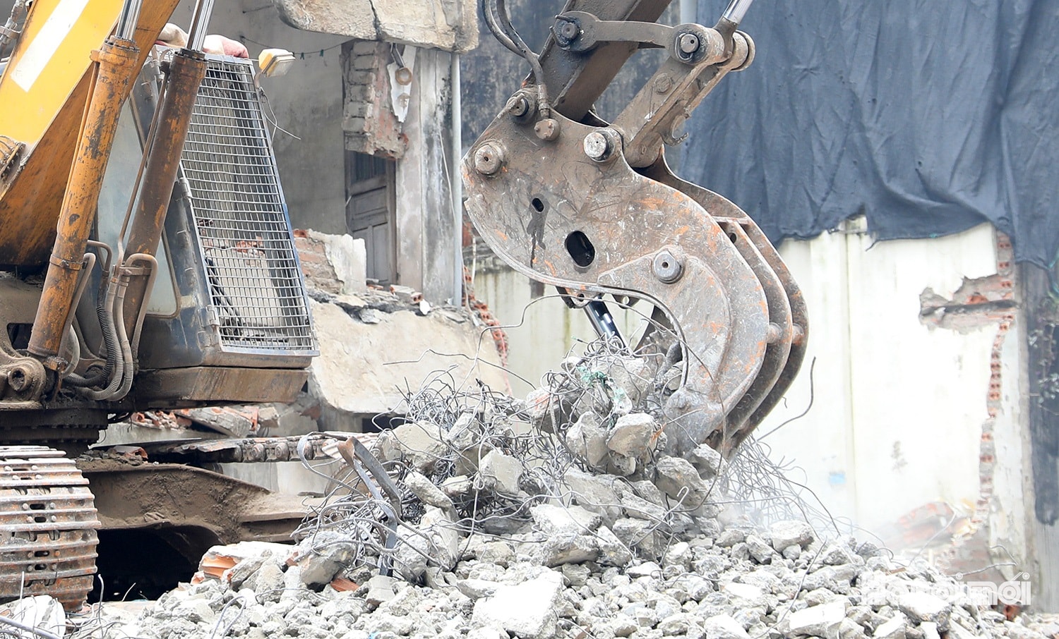 Quá trình phá dỡ các công trình không ảnh hưởng đến giao thông trên tuyến đường Đê La Thành.