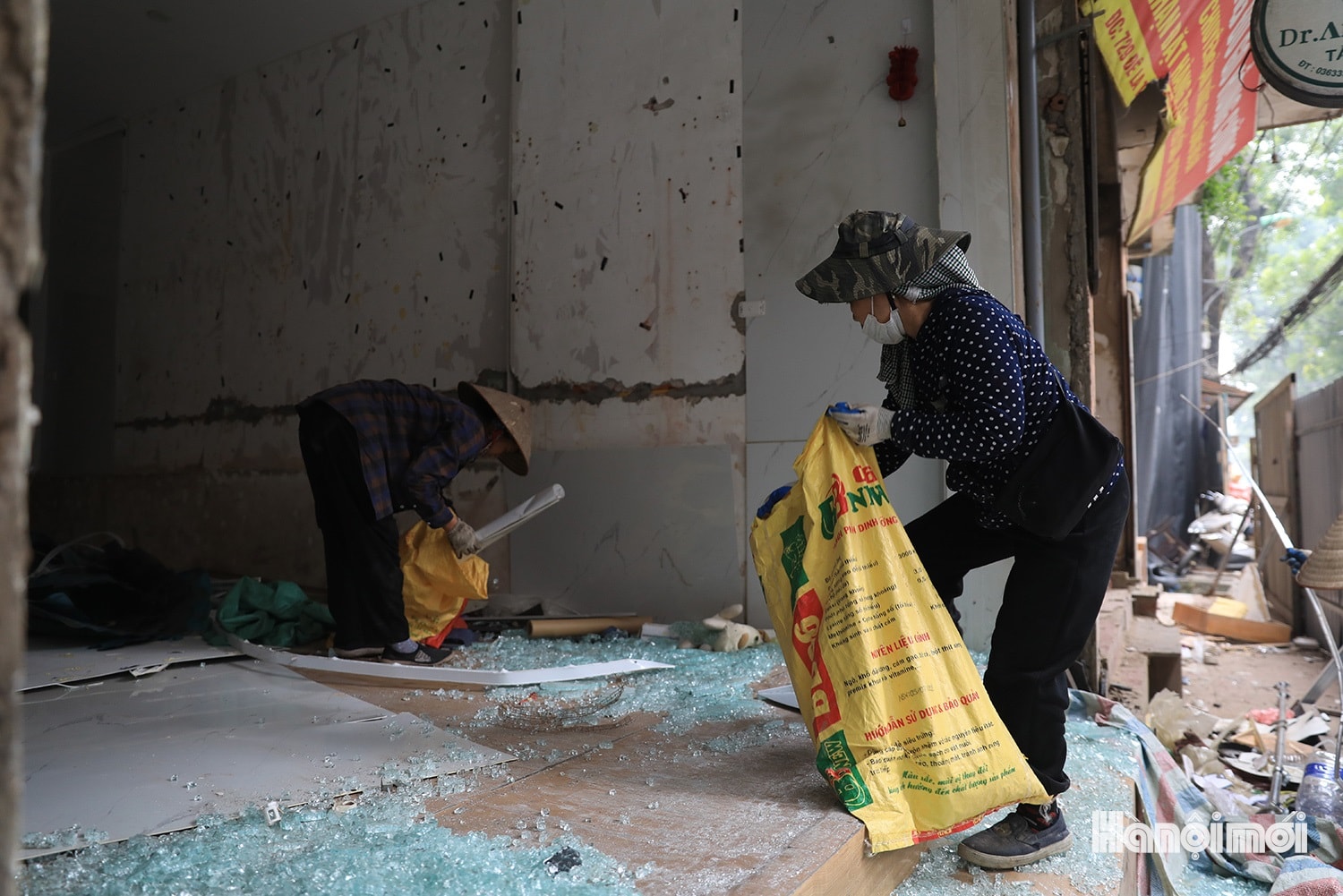 Nhiều hộ gia đình chủ động thuê người đến thu gom, dọn dẹp mặt bằng.