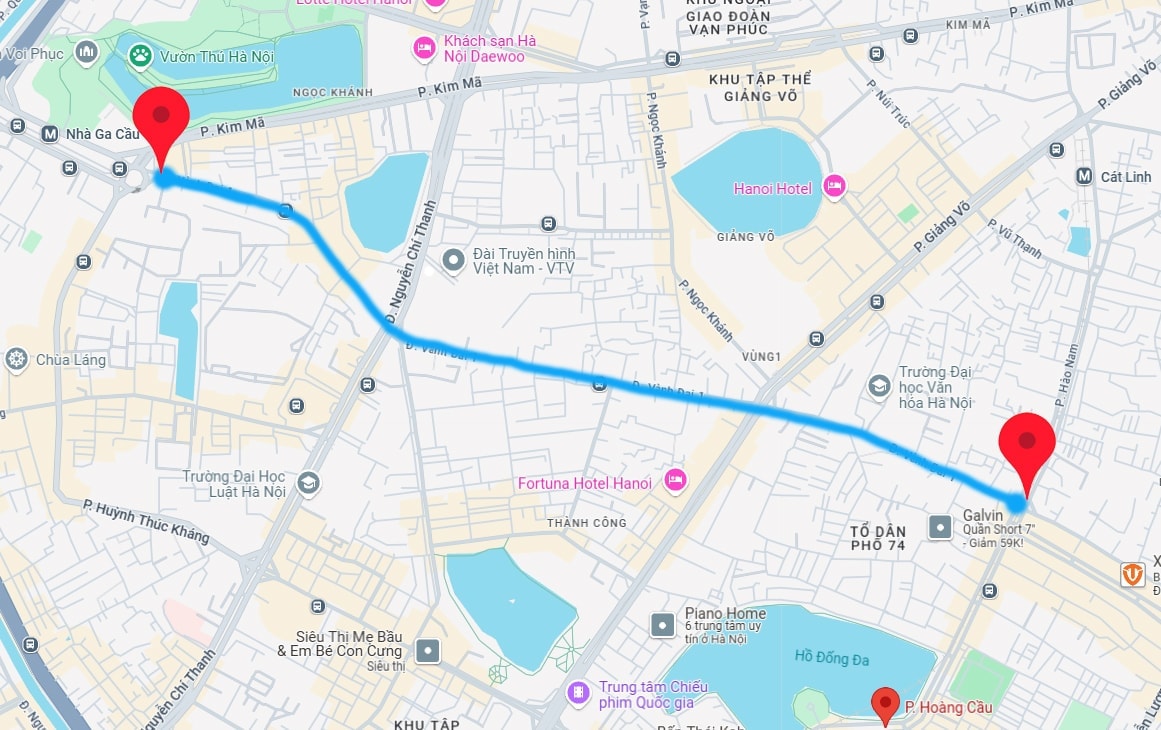 Chiều dài dự án đường Vành đai 1 (đoạn Hoàng Cầu - Voi Phục). Ảnh: Google Maps