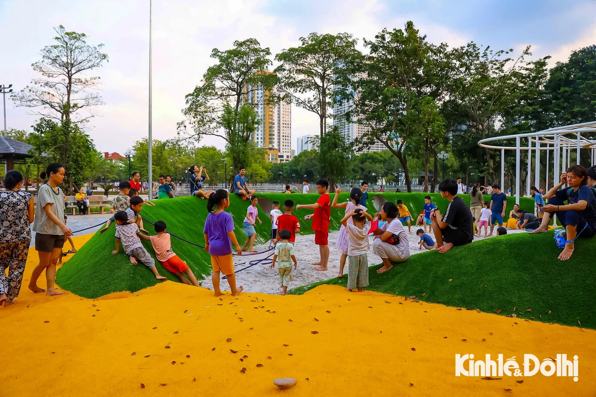 Khu vui chơi trẻ em được đầu tư đồng bộ, trở thành điểm nhấn thu hút vào mỗi cuối tuần.