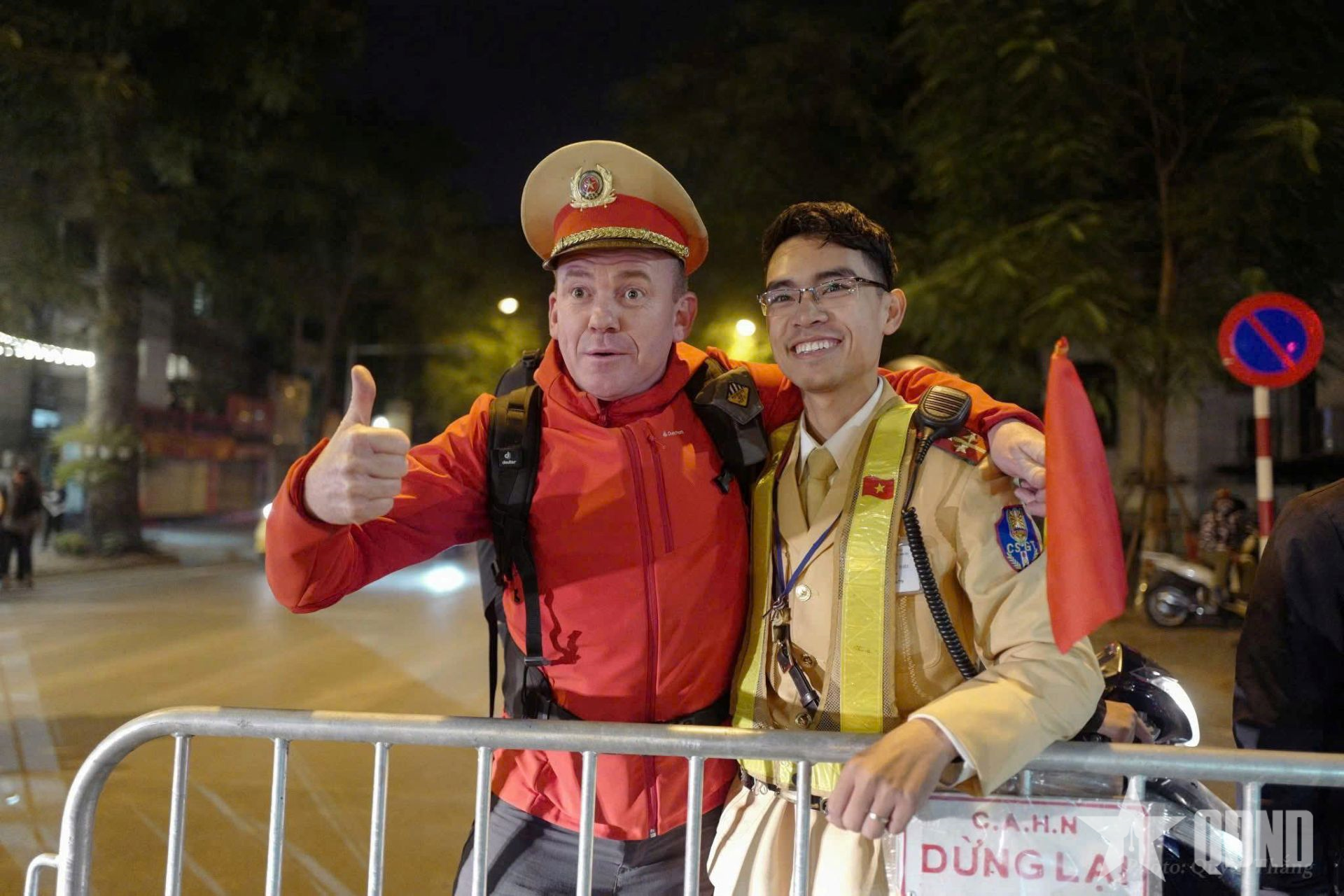 Nhiều du khách nước ngoài khi biết về chiến thắng của đội tuyển Bóng đá U22 cũng ra đường chia vui.