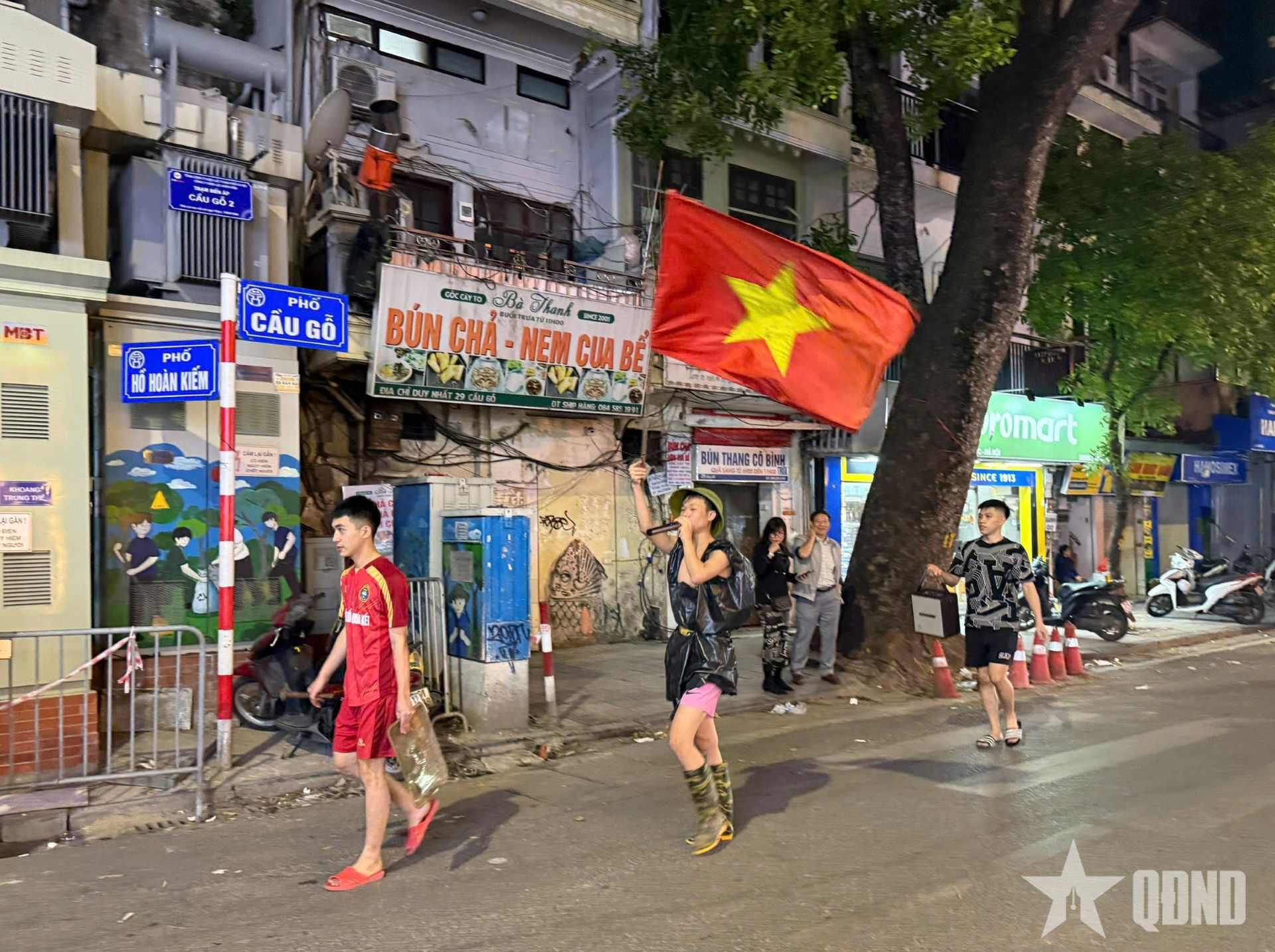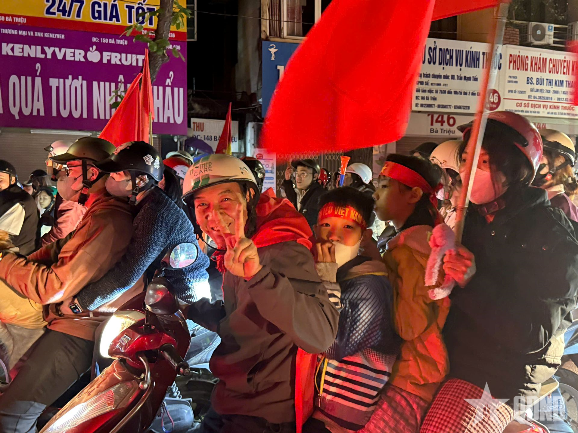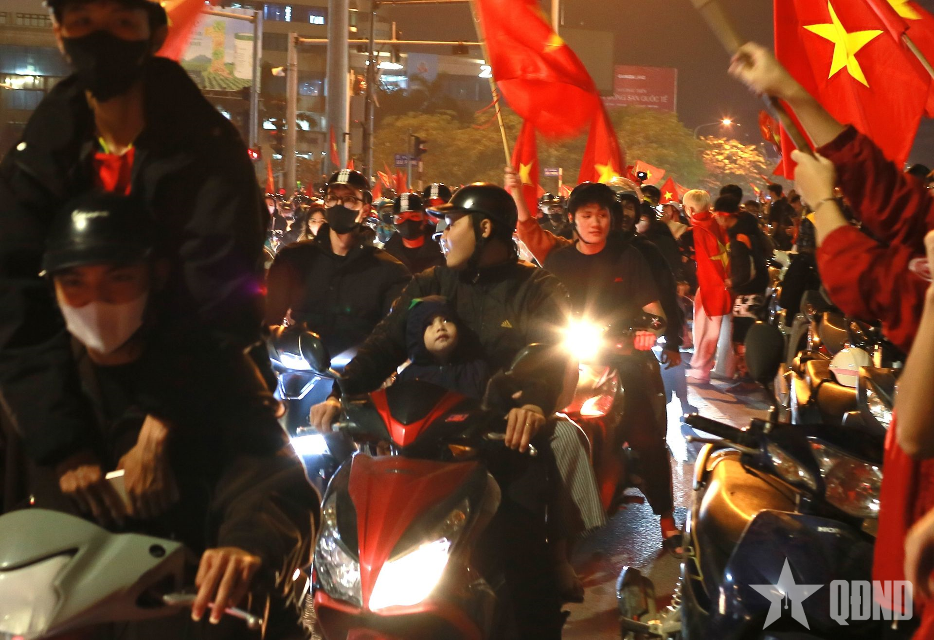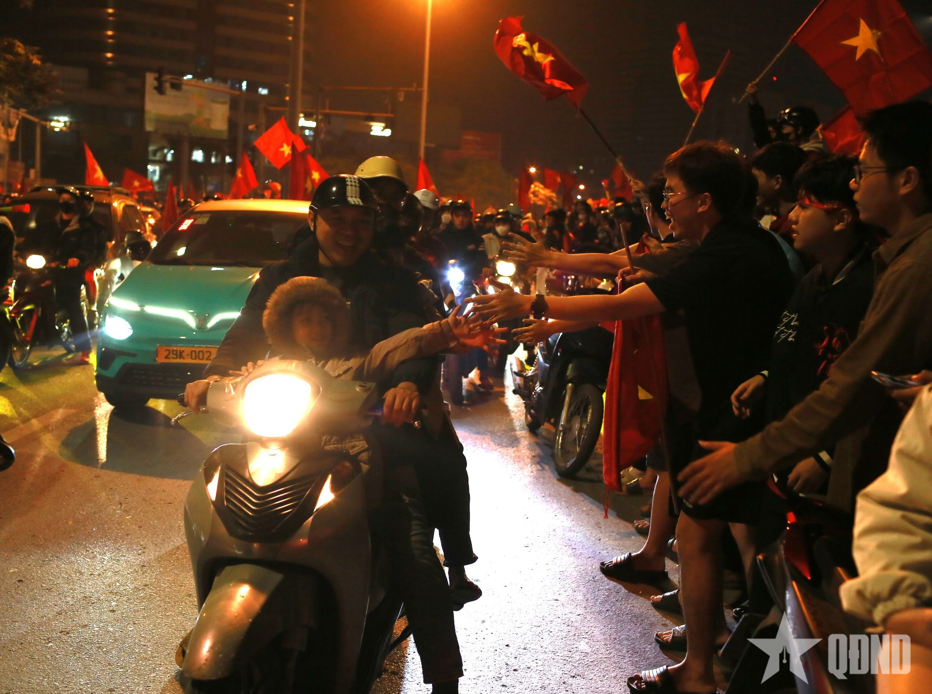 Dù thời tiết đêm Hà Nội khá lạnh, nhưng không khí ăn mừng vẫn rất cuồng nhiệt.