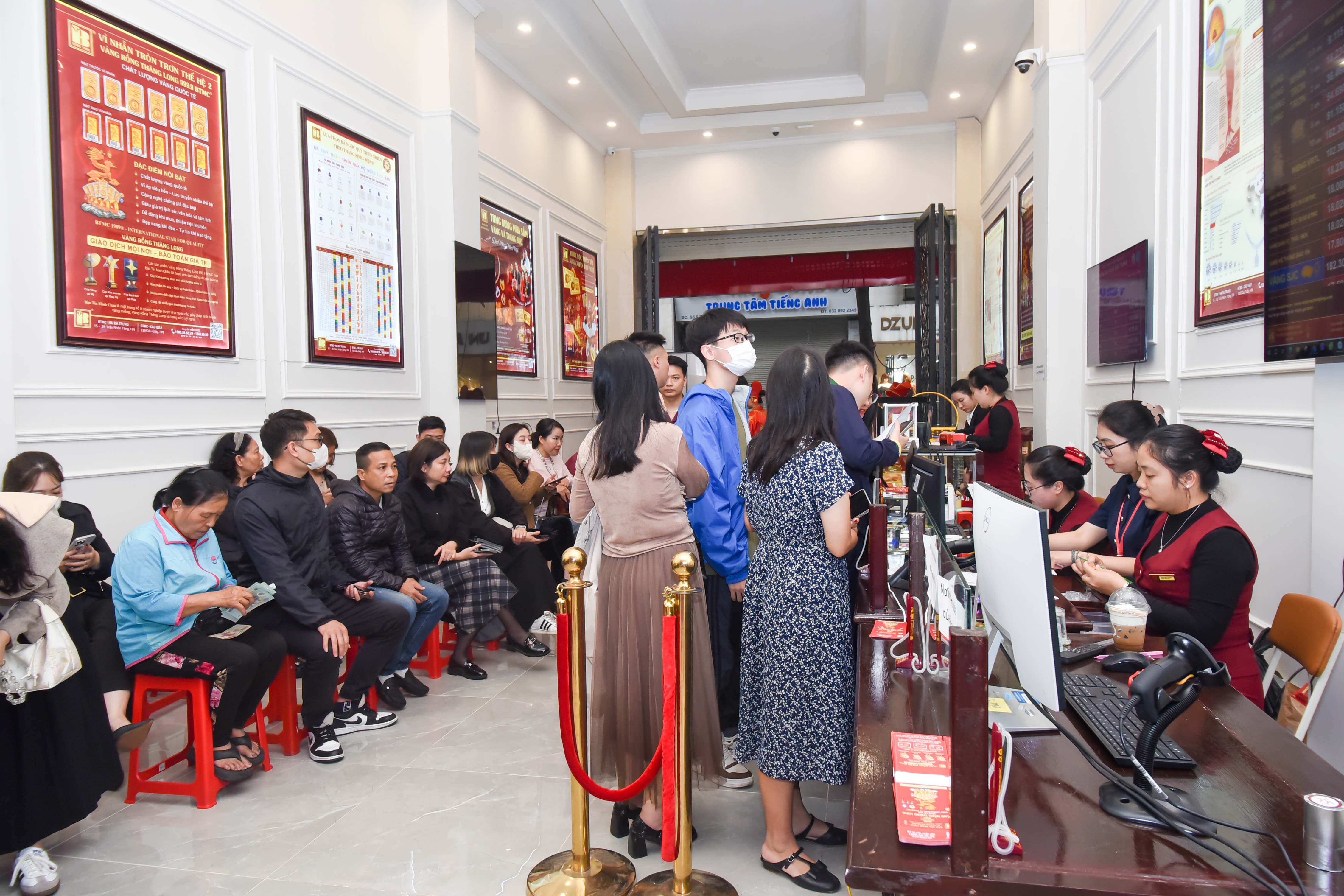 Cơ sở Mai Hắc Đế mới mở ghi nhận lượng khách ổn định từ sáng sớm. Nhờ bố trí khu vực giao dịch khoa học, khách hàng không phải chờ đợi quá lâu dù nhu cầu mua vàng tăng cao.