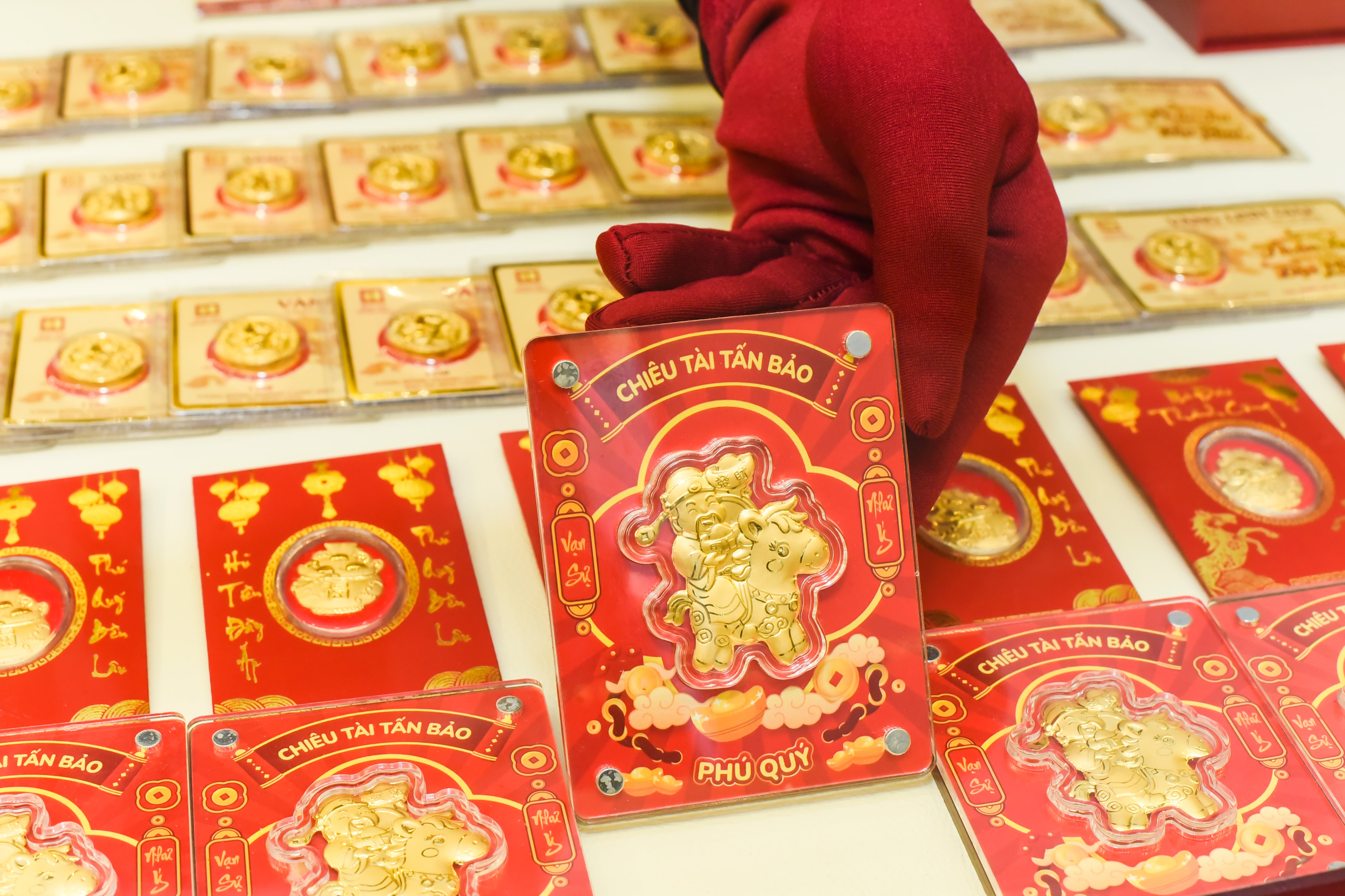 Năm nay, xu hướng của phần lớn khách hàng chọn mua các sản phẩm vàng nhỏ như nhẫn tròn trơn Vàng Rồng Thăng Long 999.9 từ 0,5 chỉ đến 2 chỉ để lấy may đầu năm. Bên cạnh đó, các sản phẩm vàng trang sức 24K, miếng vàng bản vị nhỏ hay các vật phẩm mang ý nghĩa tài lộc như Thần Tài, linh vật hay đồng tiền vàng cũng được nhiều người quan tâm.