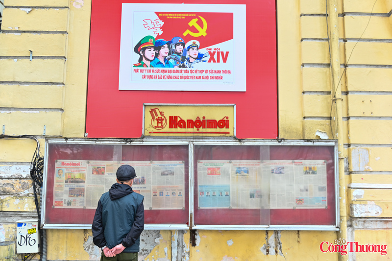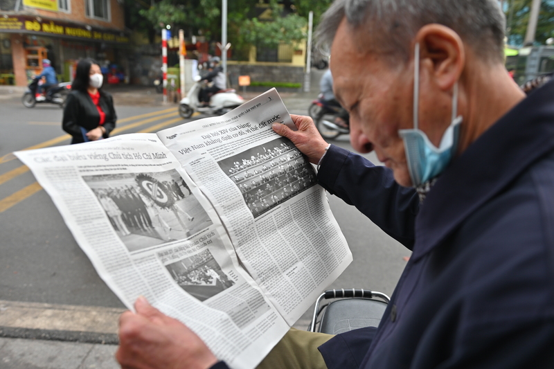 Nhiều người dân trong sáng nay cũng đã dừng lại tại các điểm đọc báo của một số tờ báo lớn trên địa bàn thủ đô để đọc những dòng tin về Lễ khai mạc Đại hội XIV của Đảng.