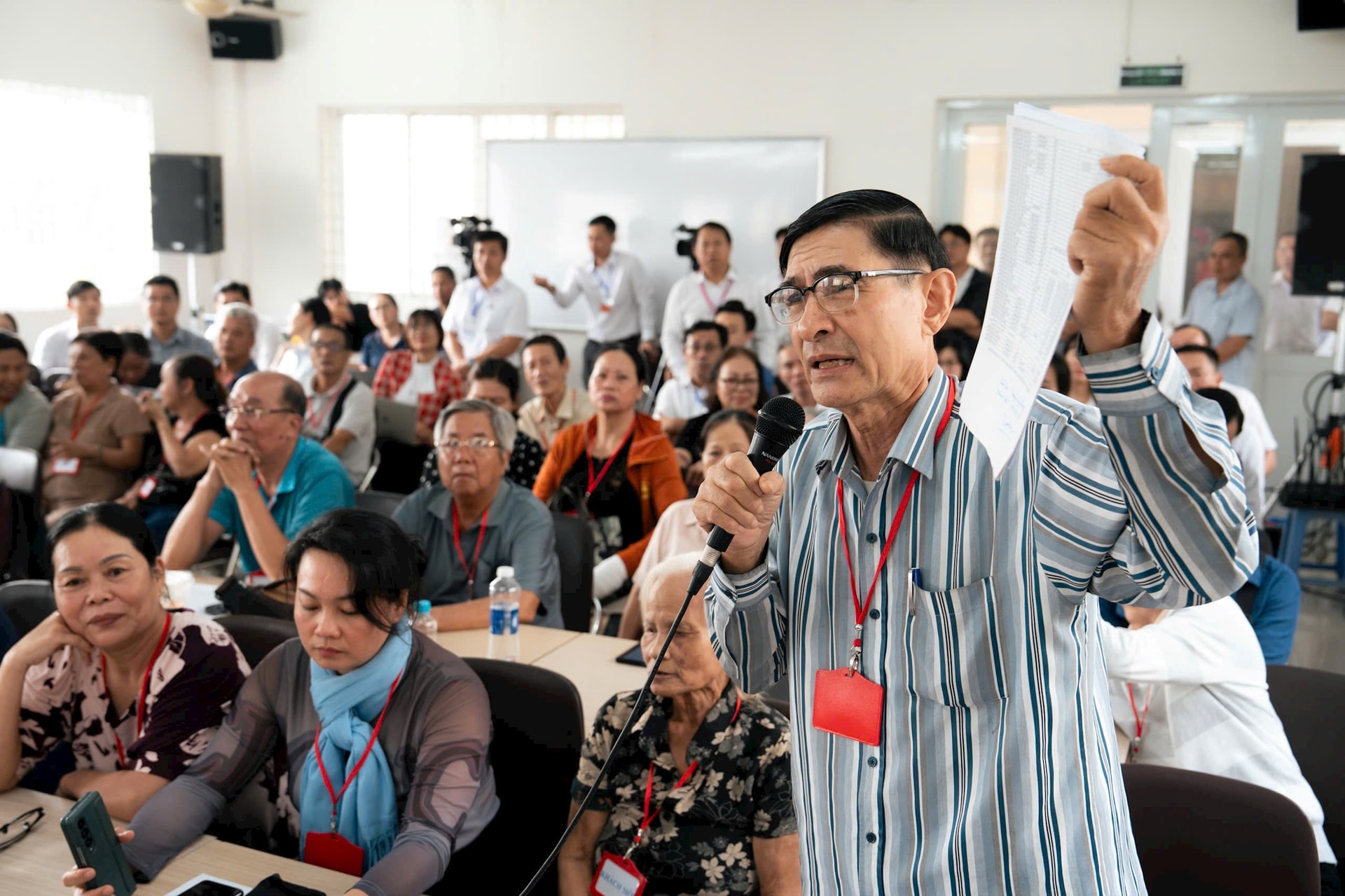 Người dân Thủ Thiêm trình bày ý kiến tại buổi tiếp xúc. Ảnh: Hữu Hạnh