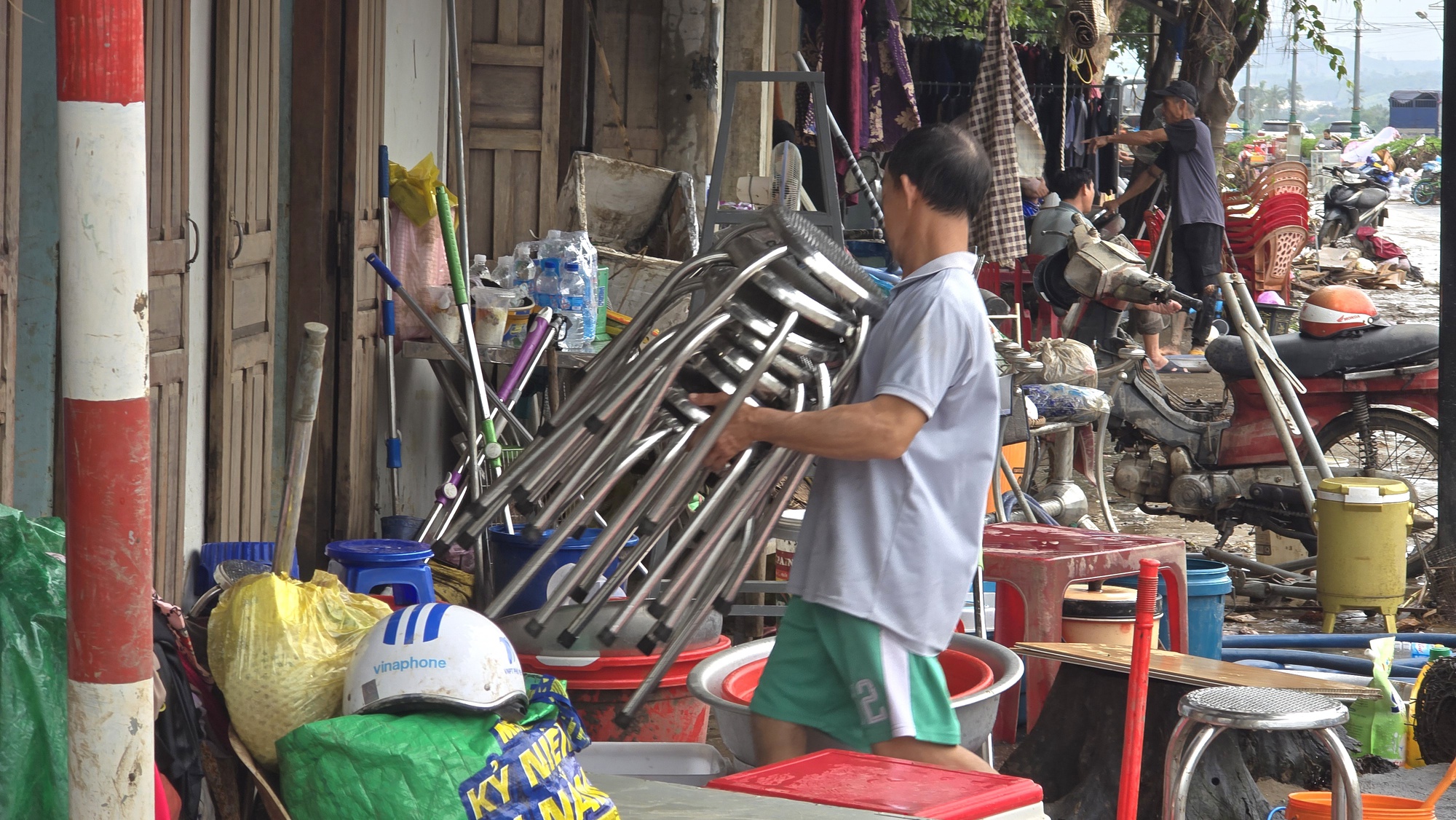 Ba ngày nay, người dân ở đây tất tả dọn dẹp nhà cửa, bữa ăn chủ yếu trông vào mì gói từ các đoàn cứu trợ.