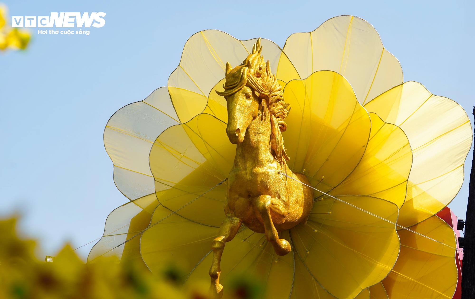 Điểm nhấn nổi bật của lễ hội năm nay là mô hình linh vật ngựa được đặt tại cổng chính, với tạo hình như đang bay ra từ đóa hoa mai vàng rực rỡ. Linh vật ngựa được thiết kế theo ngôn ngữ nghệ thuật đương đại, vừa mang nét oai phong truyền thống, vừa tràn đầy hơi thở đổi mới của kỷ nguyên số.