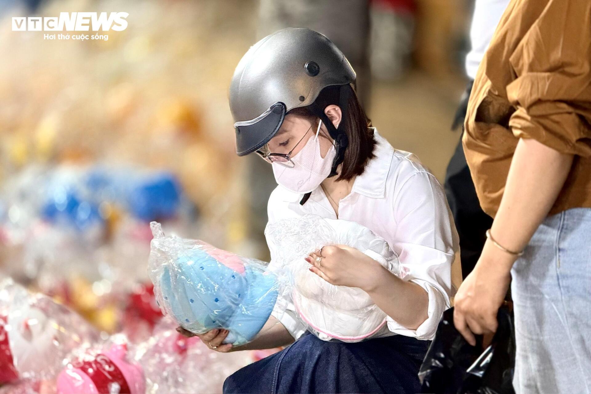 “Con này đẹp hơn nè, lấy con này đi”, một cô gái nói với bạn, tay lau nhẹ lớp bụi trên tai heo trước khi đưa cho người bán gói lại.