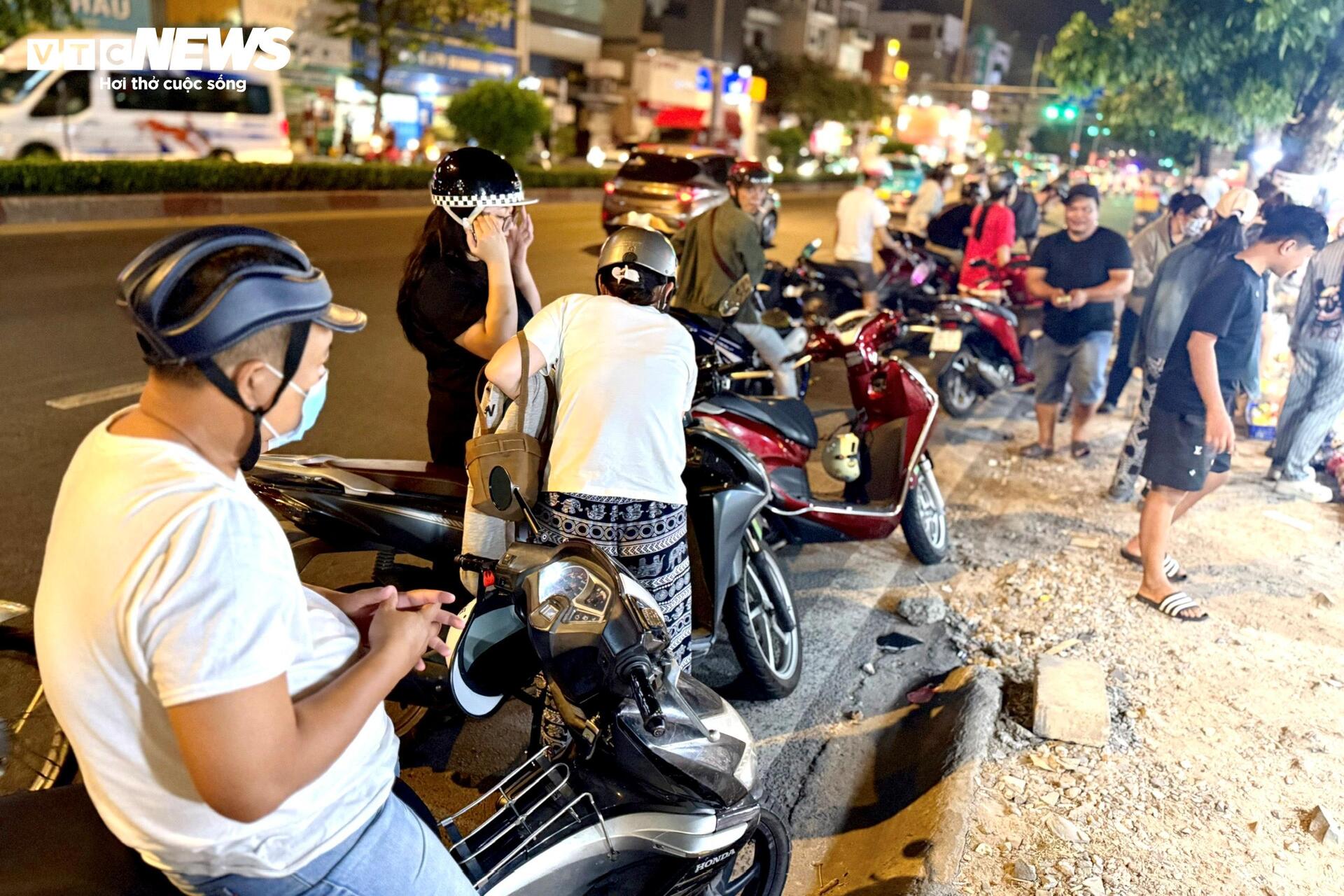Dòng xe máy liên tục dừng lại, người mua bước xuống chọn hàng.