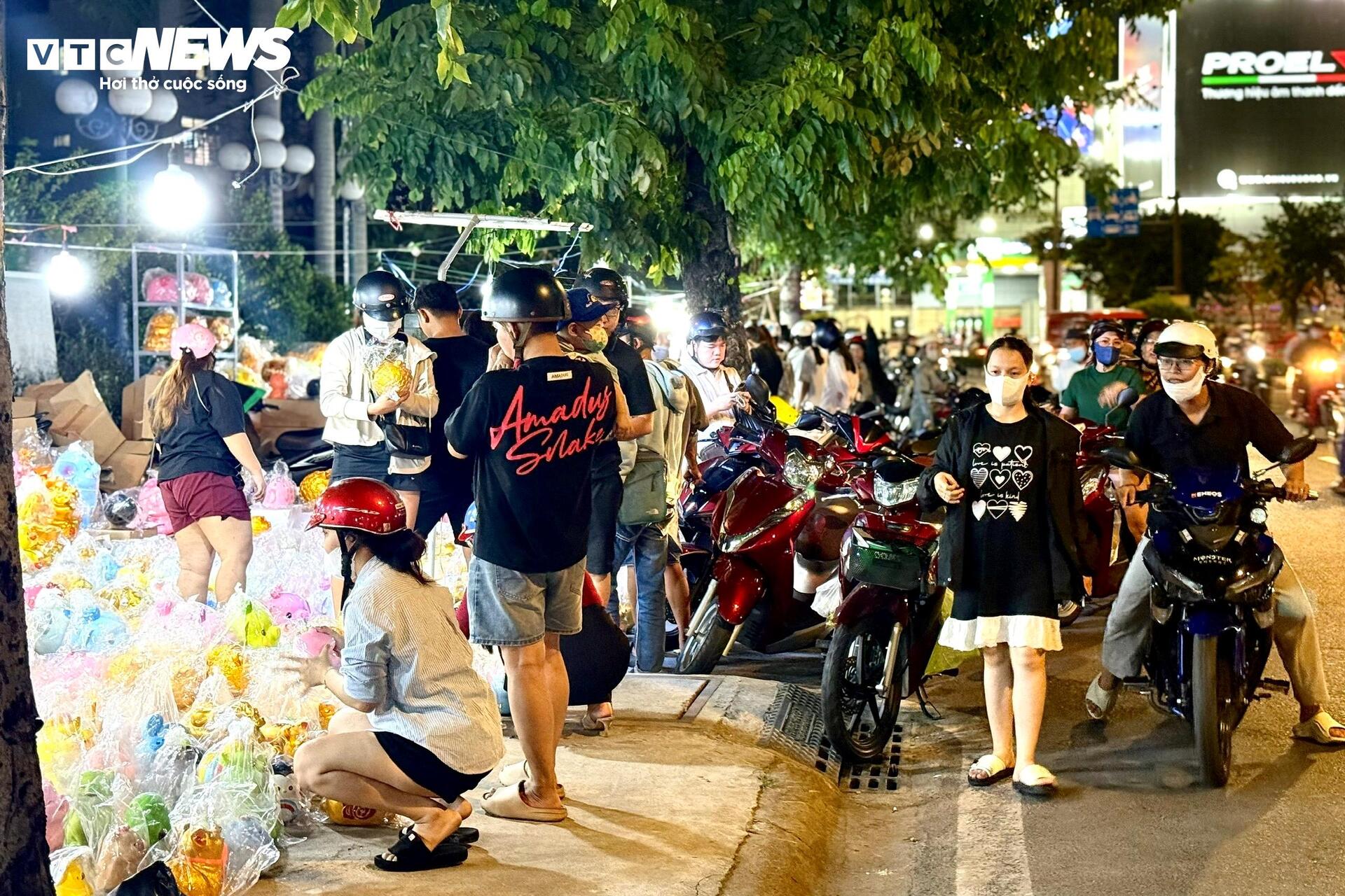 Ghi nhận của PV Báo Điện tử VTC News lúc 21h ngày 25/2 (mùng 9 tháng Giêng), khu vực gần giao lộ Cộng Hòa - Trường Chinh (quận Tân Bình cũ) nhộn nhịp khác thường. Dọc vỉa hè, những chú heo đất đủ kích cỡ, màu sắc được bày thành từng hàng cao. Trước mỗi sạp là dòng người chen nhau chọn mua với mong muốn “lấy vía”, cầu tài lộc, may mắn trong ngày Thần Tài.