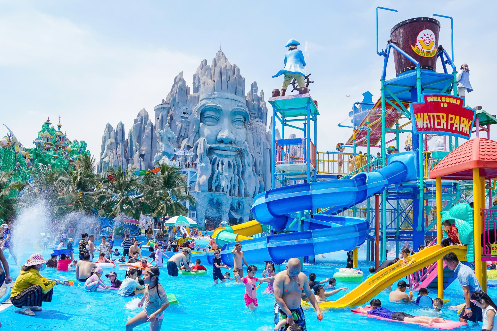 Càng về trưa, khu vực biển Tiên Đồng - Ngọc Nữ và các khu trò chơi cảm giác mạnh cũng thu hút lượng lớn du khách trẻ tuổi và các gia đình đến giải nhiệt.