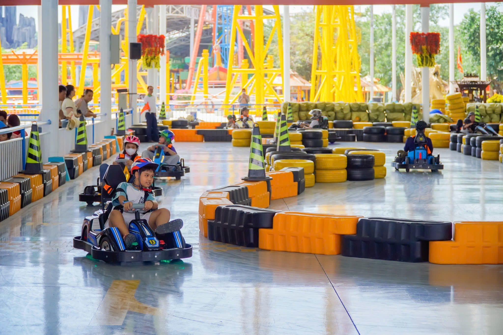 Khu vực trò chơi giải trí tại Suối Tiên luôn trong tình trạng kín khách từ sáng sớm.