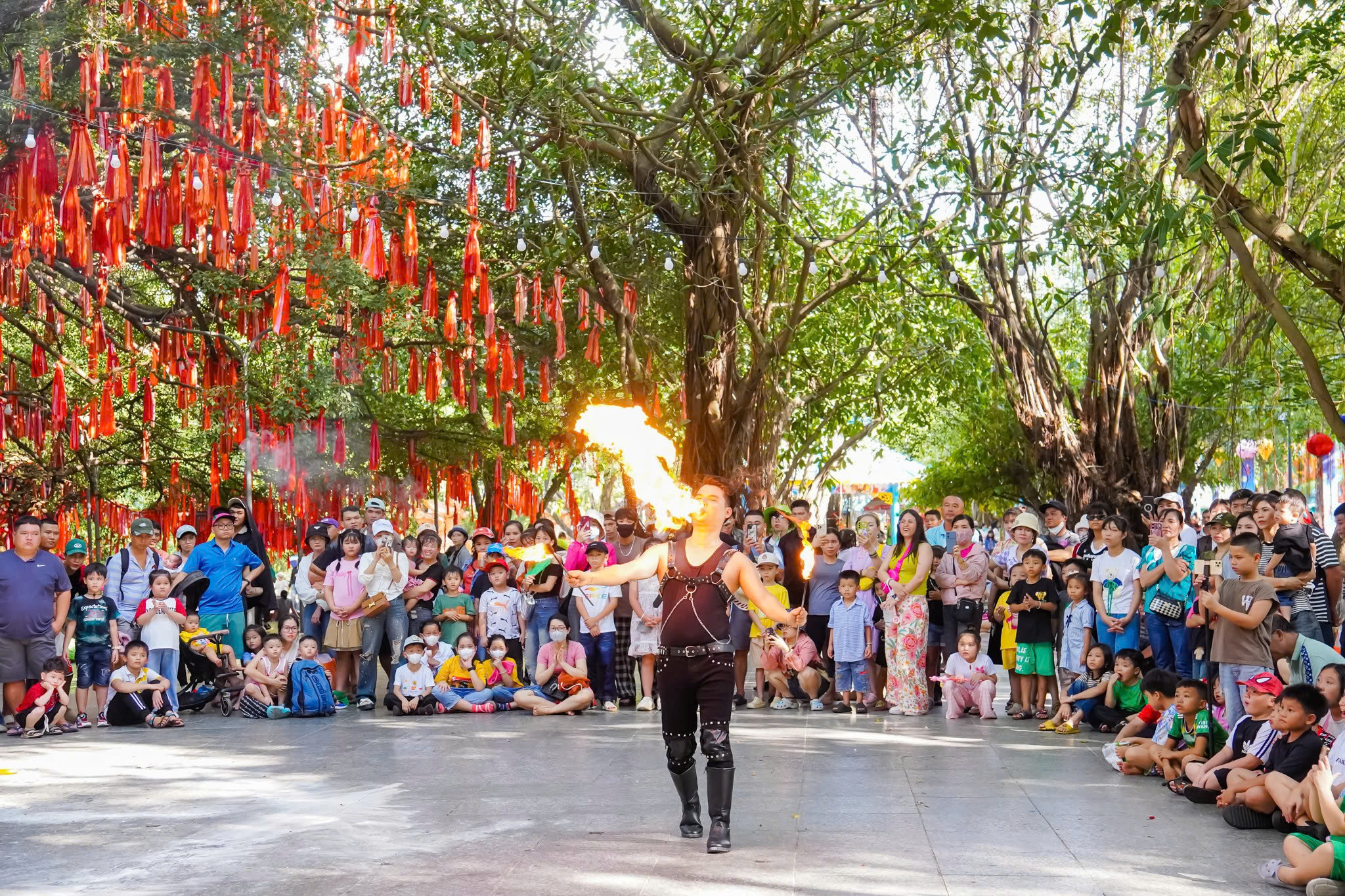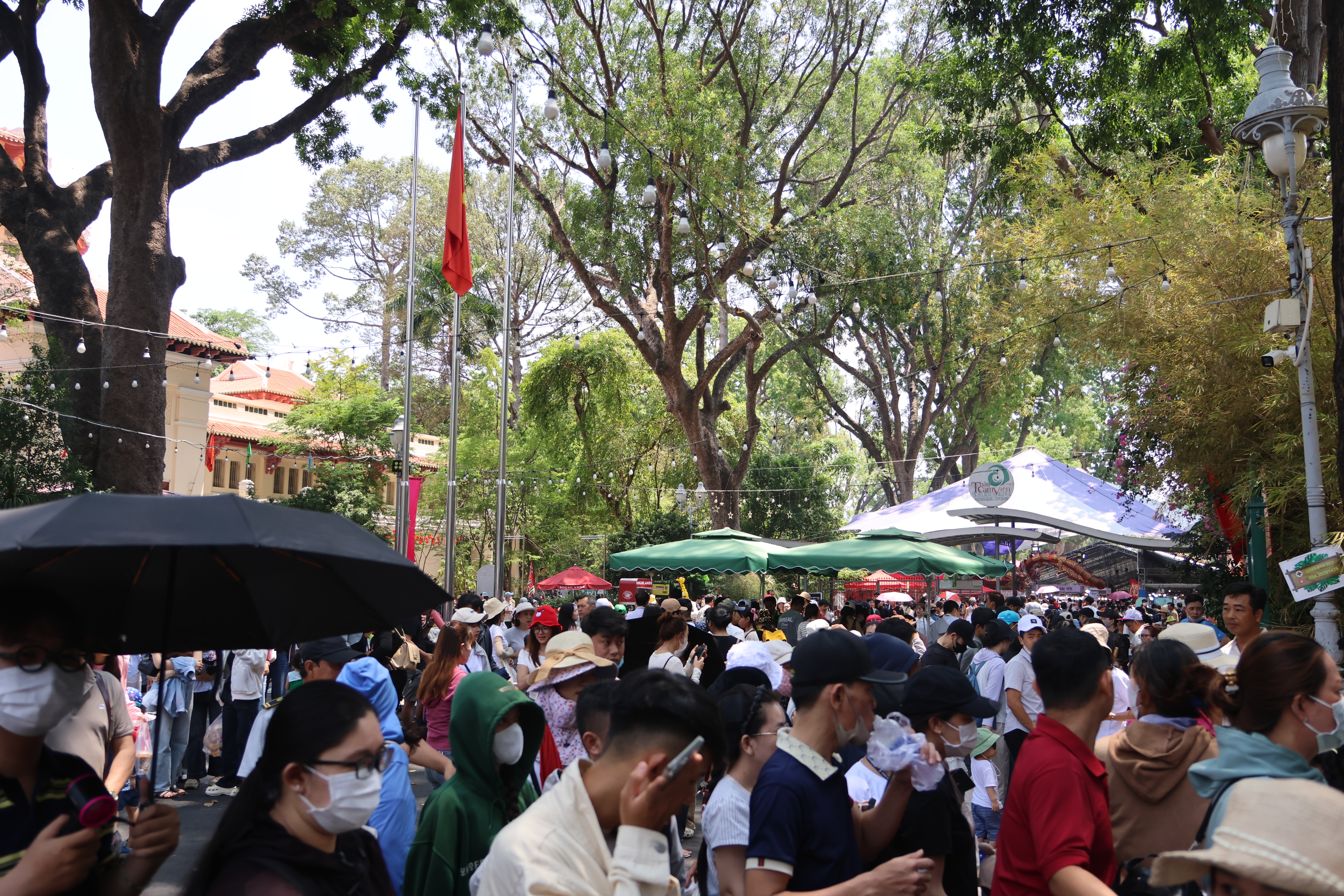 Ghi nhận tại Thảo Cầm Viên Sài Gòn, lượng người dân đổ về khu lễ hội khá đông, đặc biệt là các gia đình có trẻ nhỏ và nhóm bạn trẻ. Cổng vào trên đường Nguyễn Bỉnh Khiêm đông nghịt người từ trong ra ngoài. Khu vực sân phía trước phục vụ đón khách và bán vé gần như kín chỗ từ sớm.