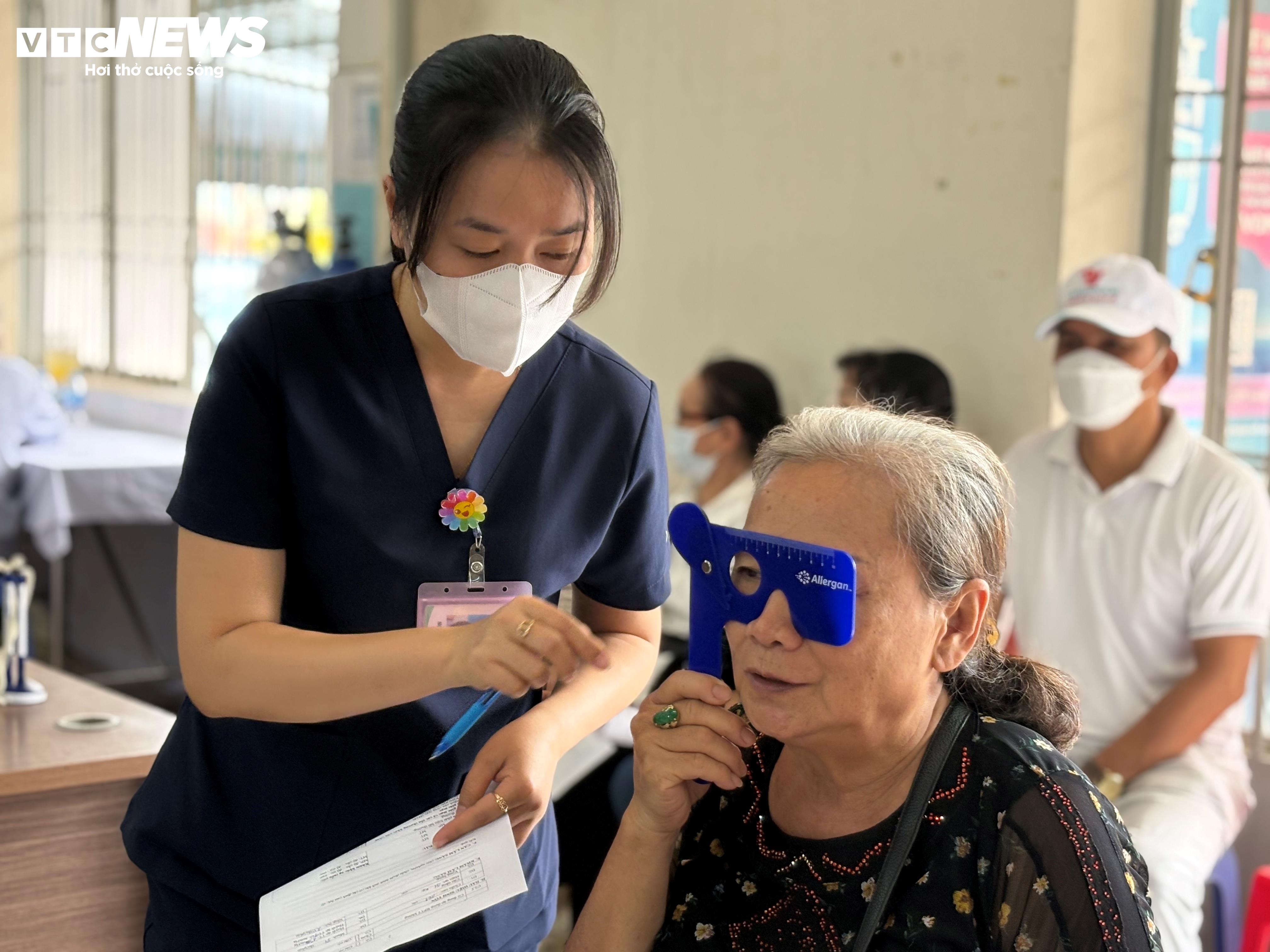 Ông Chìu Minh Sơn (66 tuổi) đến điểm khám tại Trung tâm Y tế phường Thông Tây Hội từ rất sớm để được thăm khám mắt. "Mắt tôi yếu nhiều năm nay nhưng phần vì e ngại, phần vì chưa có điều kiện nên tôi cũng chưa đi khám chuyên sâu. Nghe tin thành phố tổ chức khám miễn phí cho người dân, tôi đã đến từ sớm để thăm khám", ông Sơn nói.