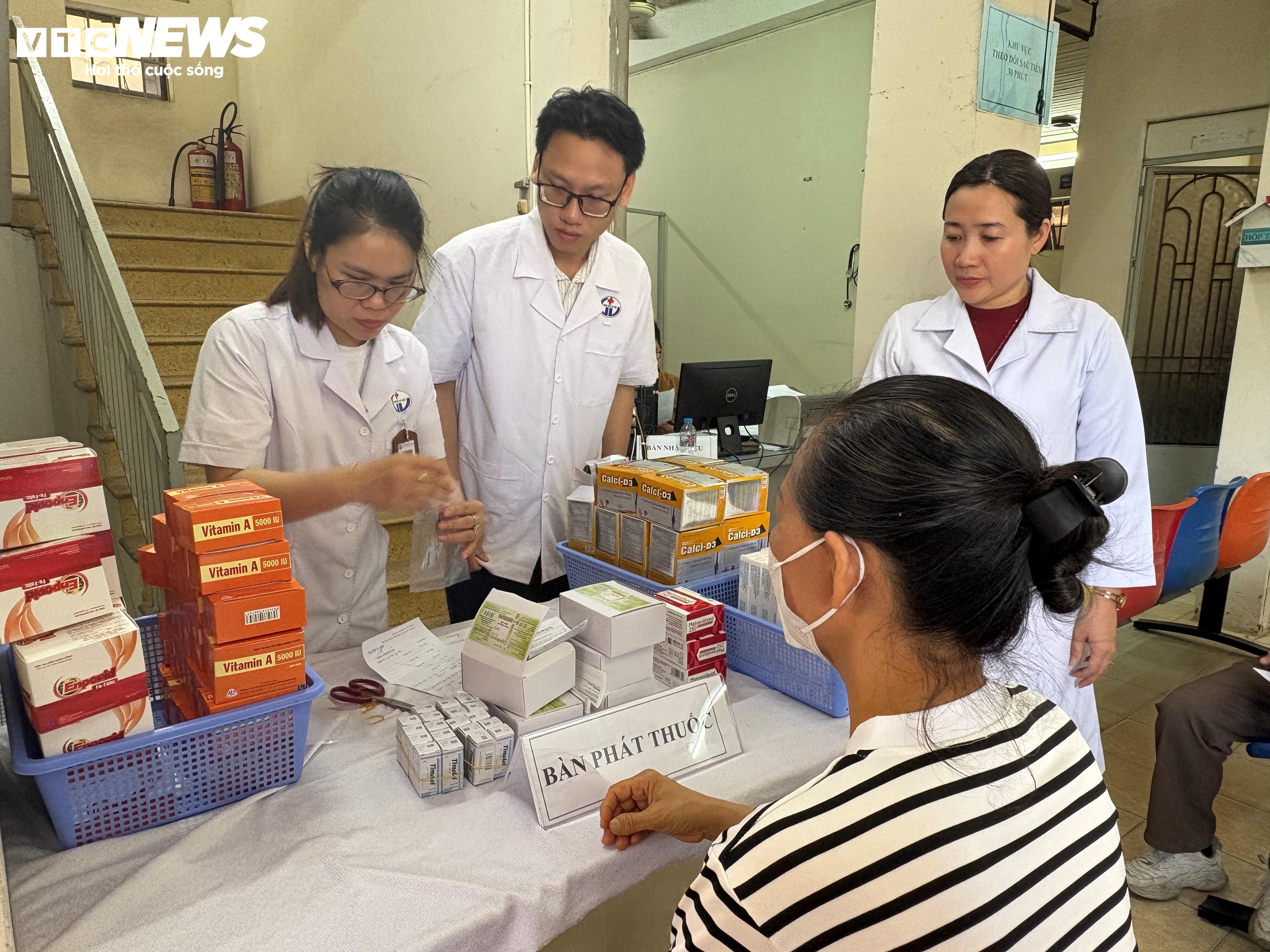 Sau khi thăm khám, tư vấn bệnh, người dân được cấp phát thuốc miễn phí.