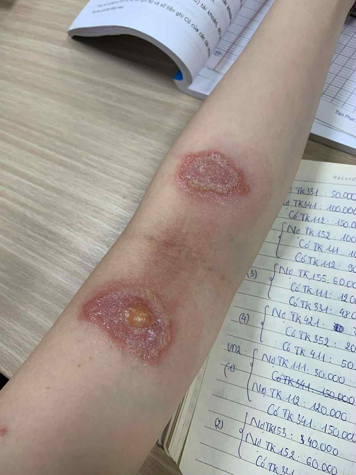 Ly làm theo. Thế nhưng, những ngày sau đó, vùng tổn thương không giảm mà lan rộng rõ rệt. Những mảng đỏ chuyển sang màu sậm, da căng nóng, rát khi chạm vào. Trên bề mặt bắt đầu xuất hiện các mụn nước li ti.