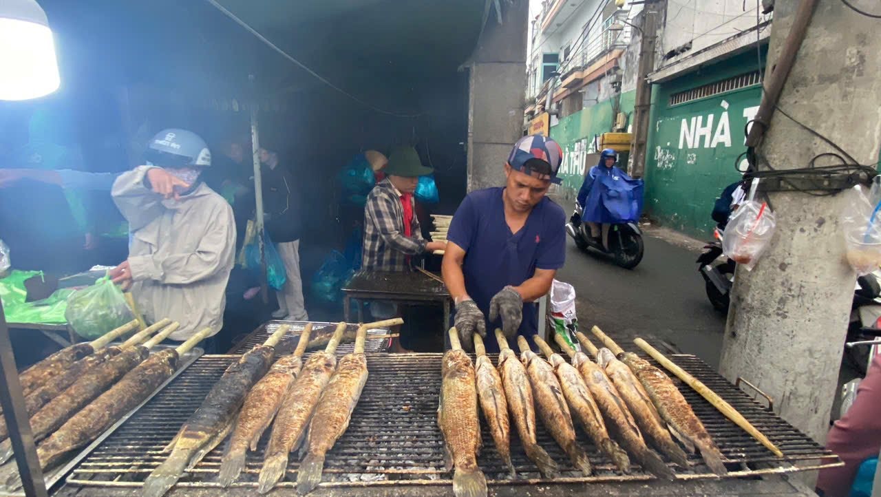 "Như thường lệ, cứ đến ngày này, ngoài vàng, nhà tôi còn mua thêm cá lóc nướng và mâm ngũ quả dâng lên ông bà tổ tiên", anh Quốc, phường Bảy Hiền nói.