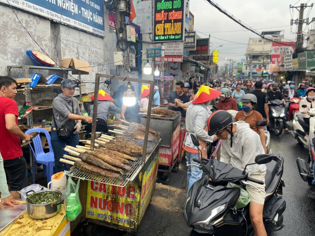 Không chỉ các cửa hàng vàng, những tuyến đường vốn nổi tiếng với mặt hàng cá lóc nướng, heo quay phục vụ ngày vía Thần tài như Tân Kỳ Tân Quý, Âu Cơ, Trần Bình Trọng… cũng nhộn nhịp phương tiện qua lại.