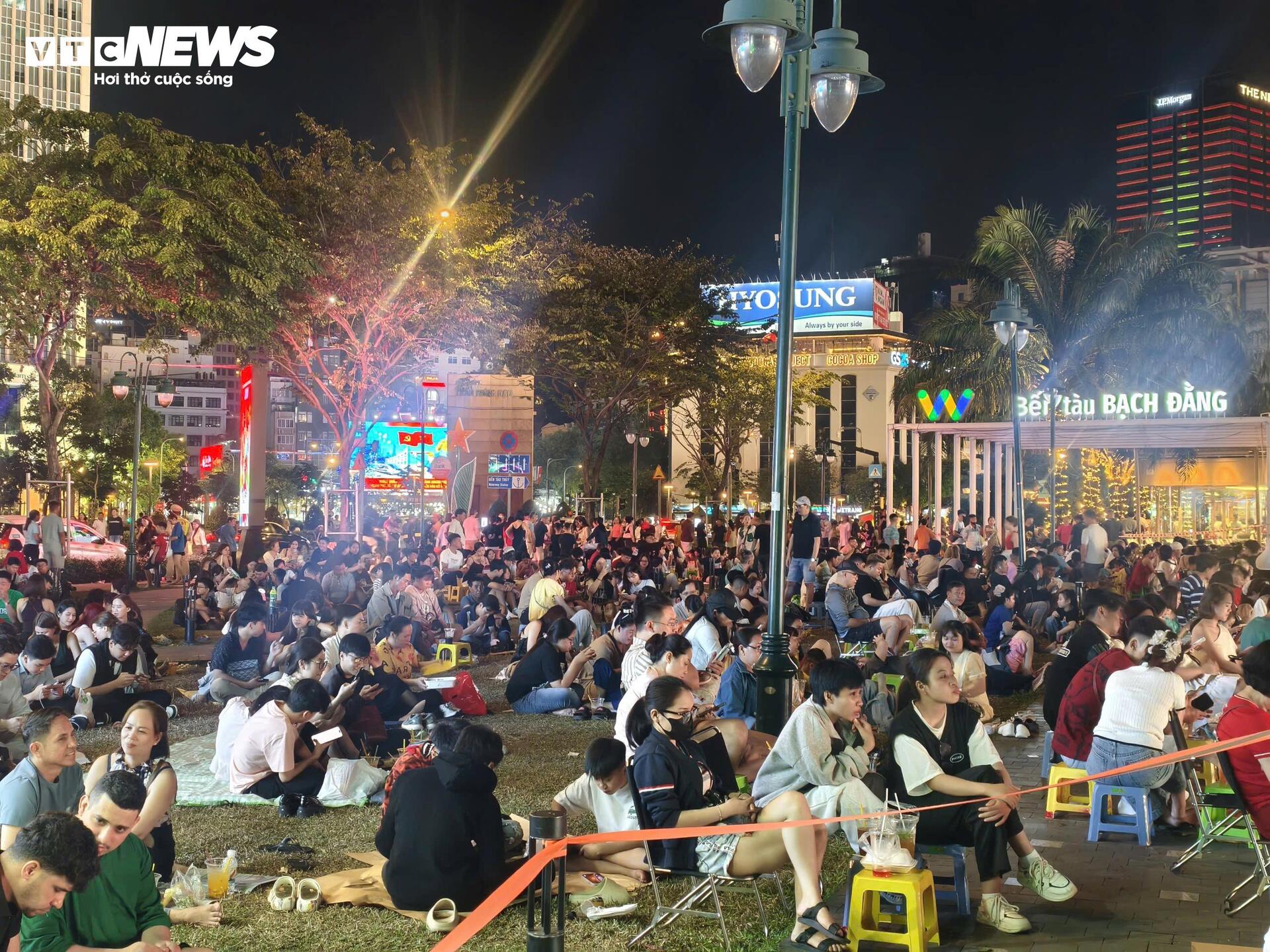 Sau khi tham quan đường hoa, nhiều người di chuyển ra khu vực công viên Bến Bạch Đằng để chờ xem pháo hoa tầm cao bắn từ khu vực đầu hầm sông Sài Gòn.