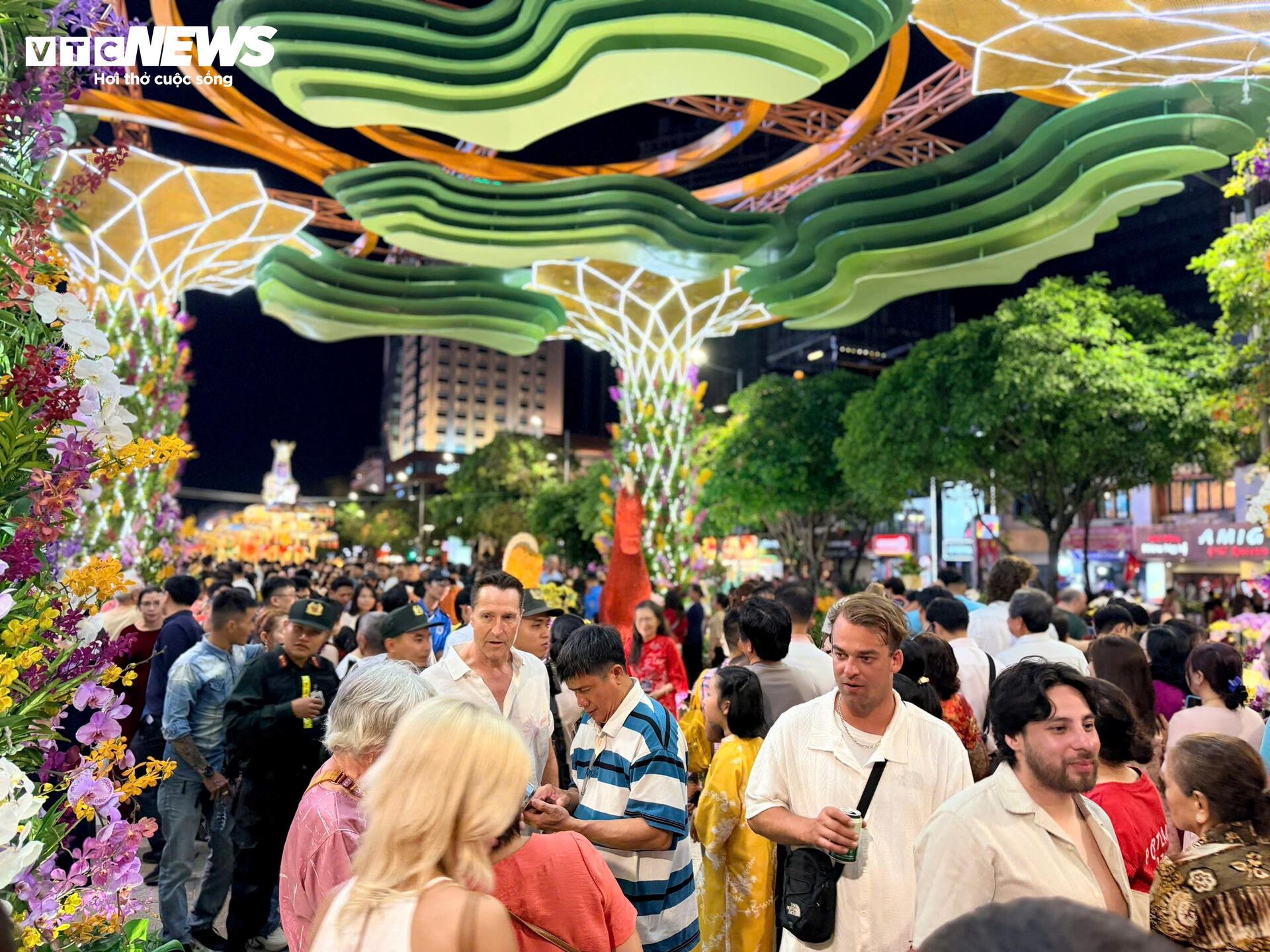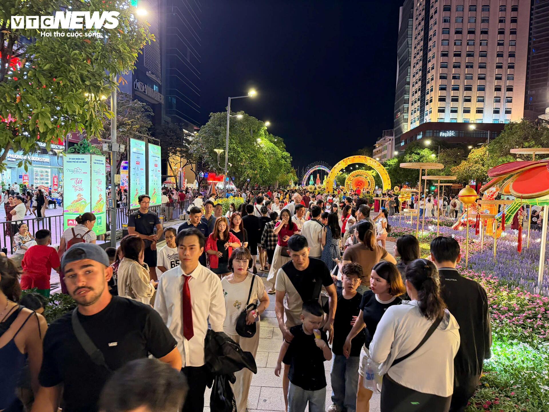 Tối 16/2 (29 Tết), không khí tại khu vực trung tâm TP.HCM rộn ràng, náo nhiệt hơn bao giờ hết. Dòng người từ khắp nơi nô nức đổ về vui xuân, chờ đón thời khắc chuyển giao năm cũ - năm mới.
