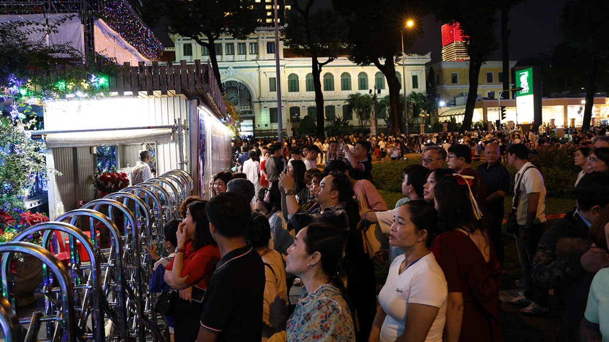 Còn tại TP.HCM, tối 24/12, sau cơn mưa lớn, người dân TP.HCM cùng đông đảo du khách vẫn đổ về các nhà thờ, xóm đạo và các tuyến phố trung tâm để vui chơi, chụp ảnh và mừng Chúa Giáng sinh.