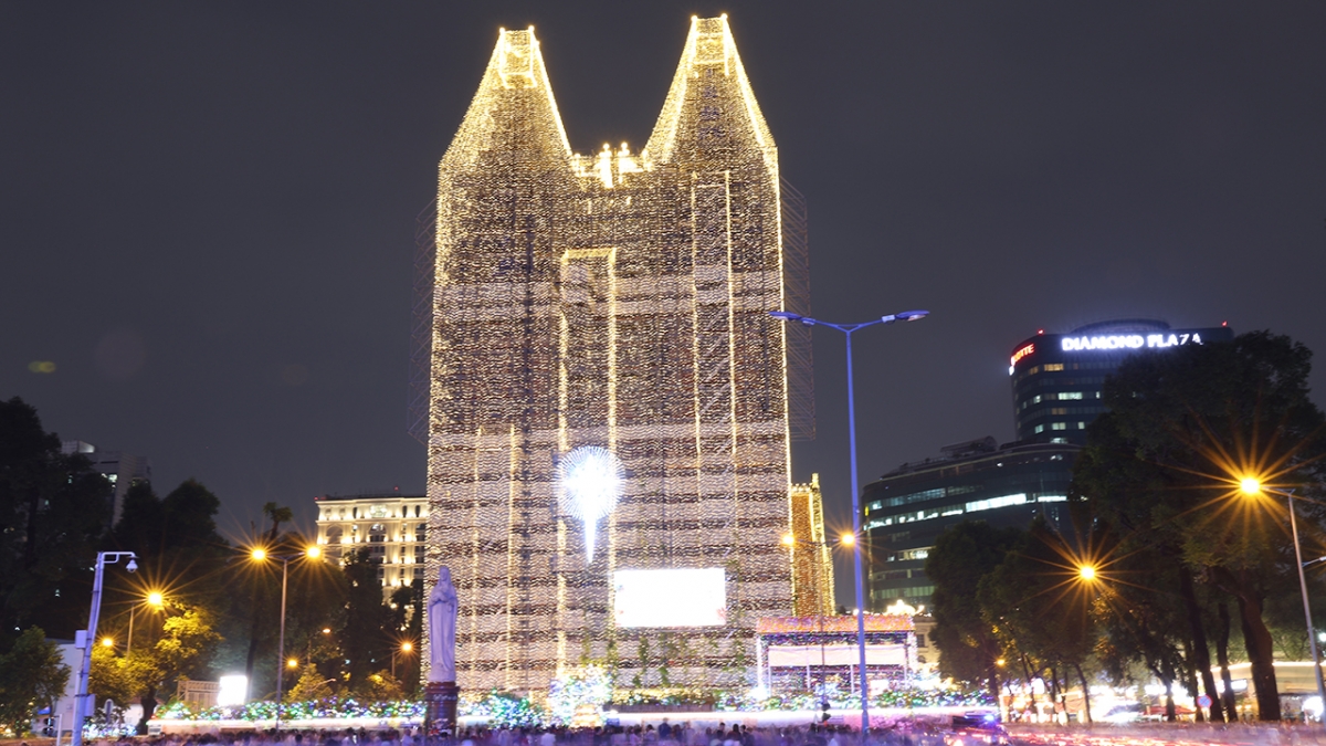 Riêng tại Nhà thờ Đức Bà, hàng triệu ánh đèn LED trang trí Giáng sinh lung linh hòa cùng tiếng thánh ca vang lên giữa lòng đô thị nhộn nhịp, tạo nên khung cảnh vừa đông vui, vừa bình yên, đầy cảm xúc.