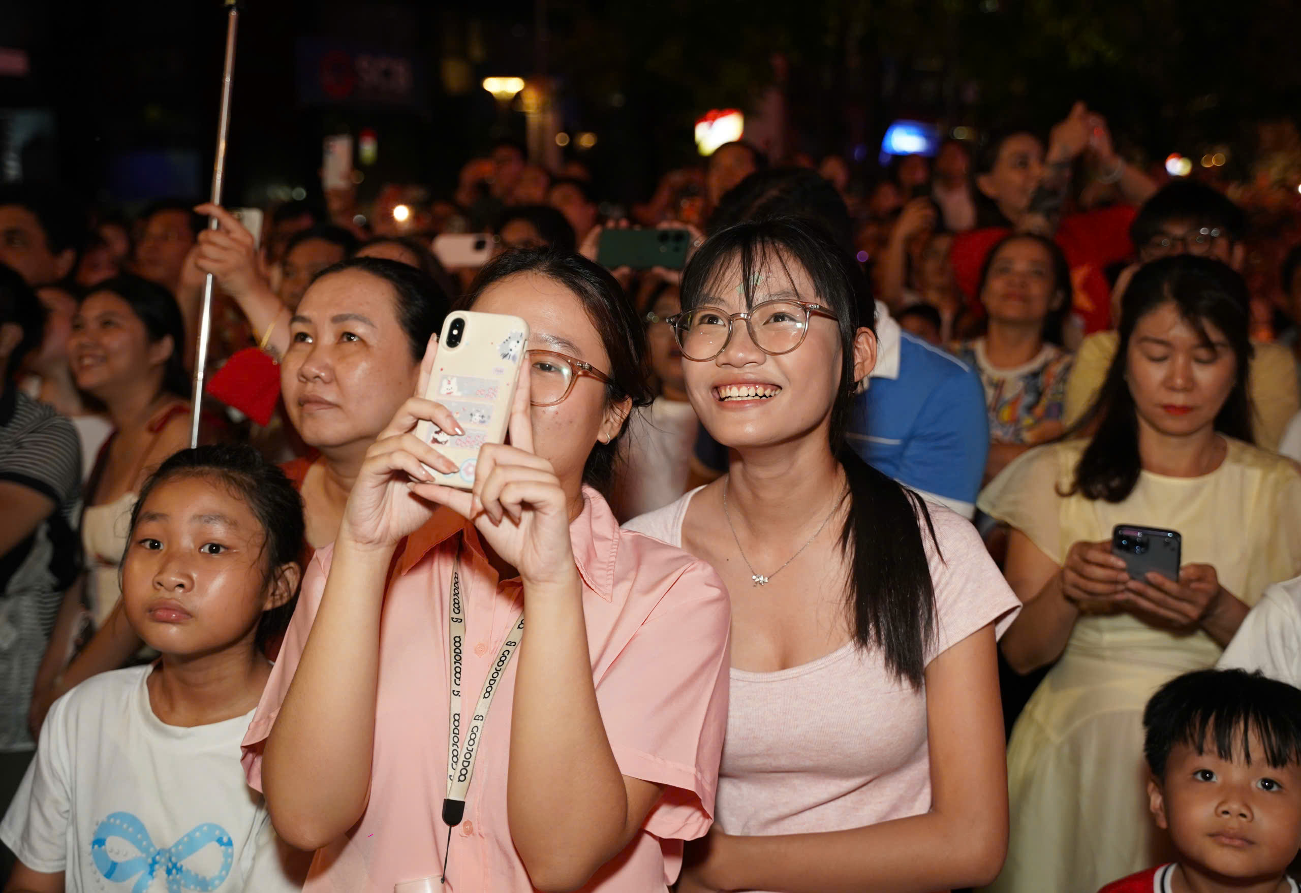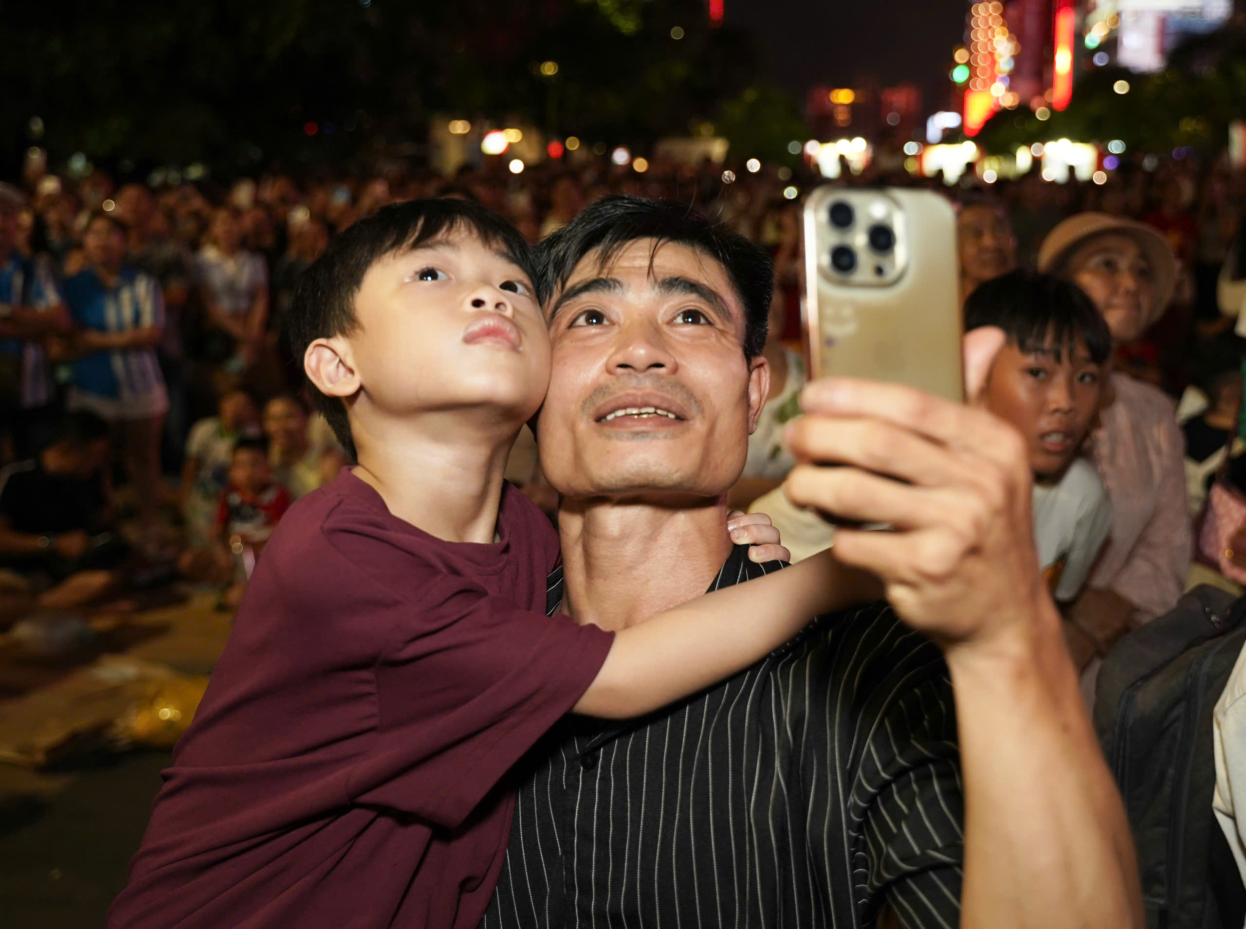 Người dân không khỏi vui mừng trước màn pháo hoa đầy màu sắc.