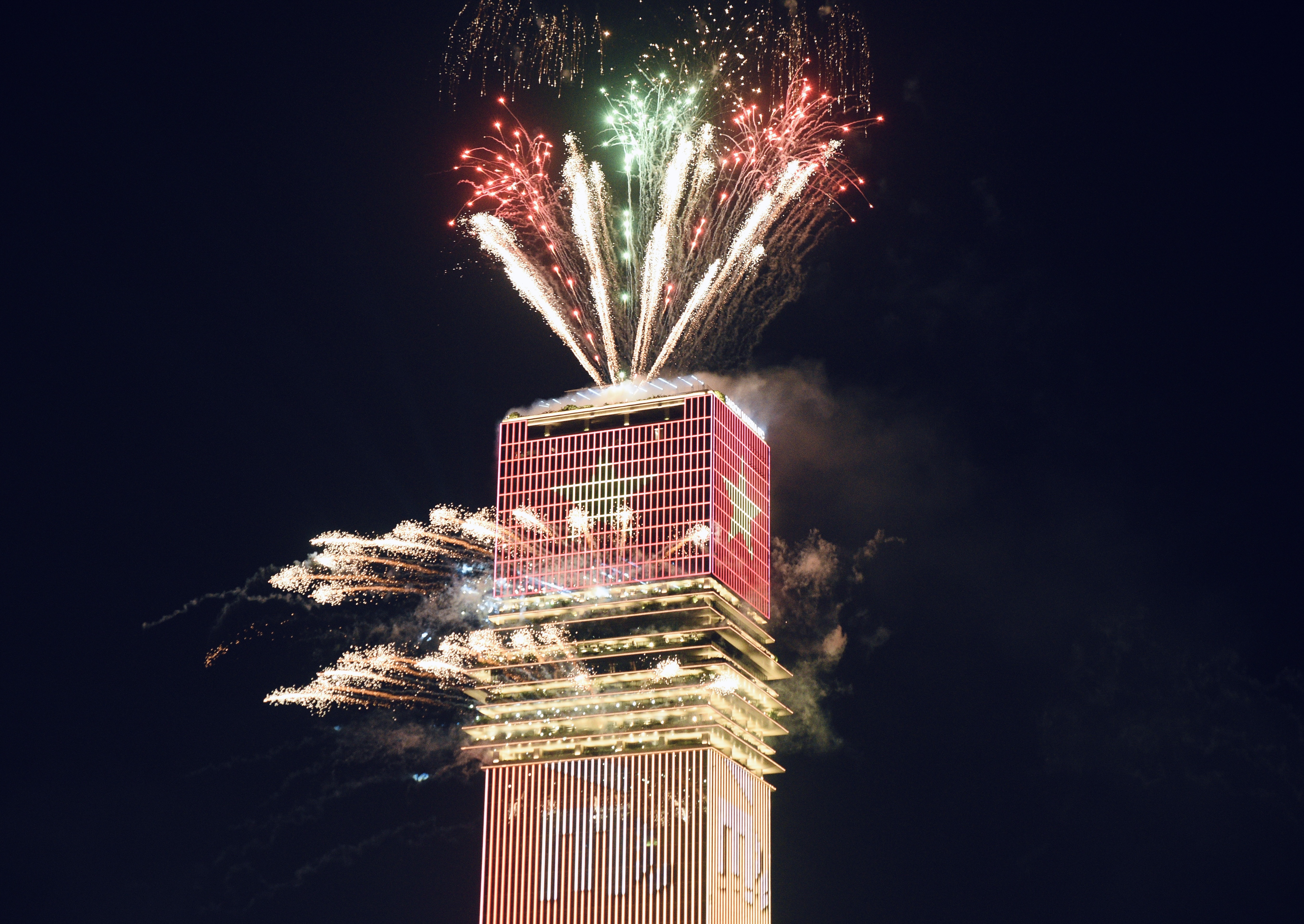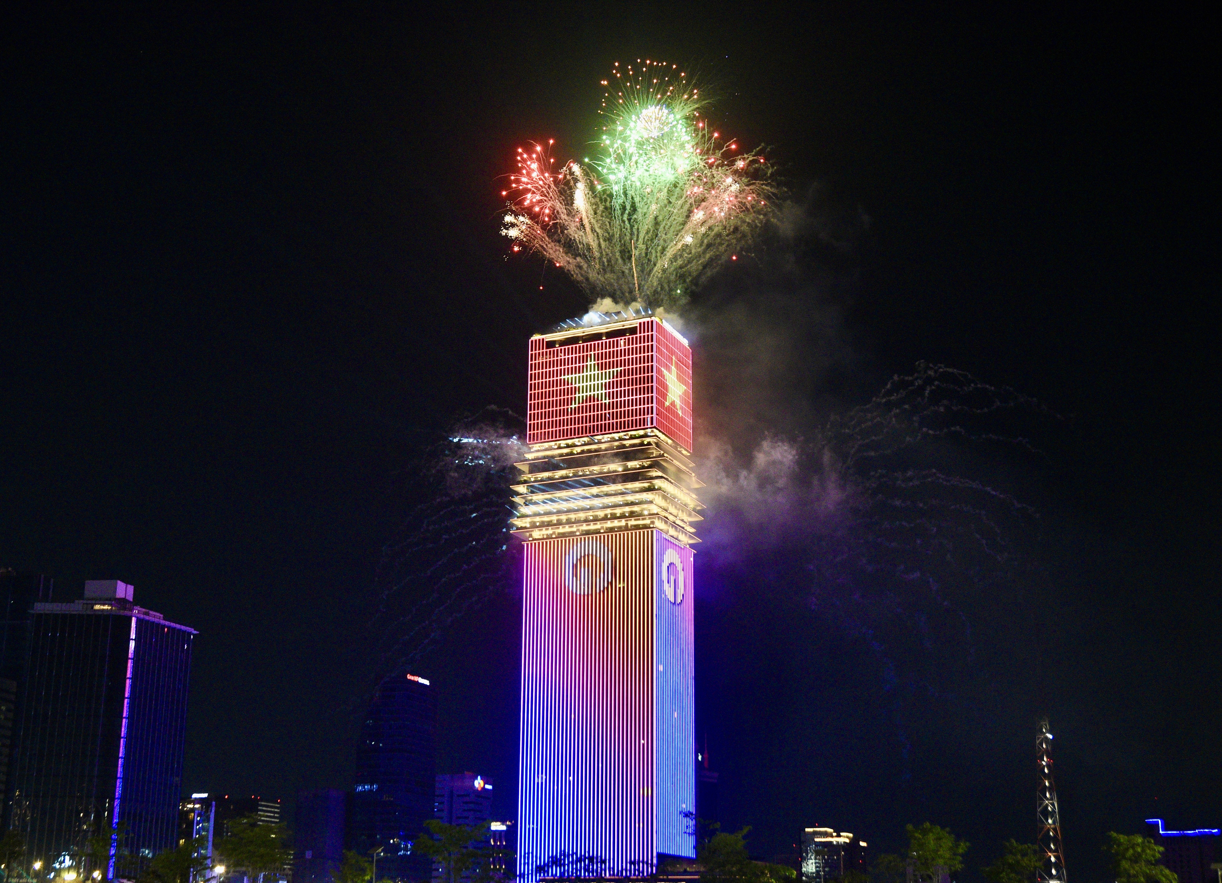 Pháo hoa rực sáng tại tòa nhà tài chính Saigon Marina IFC.
