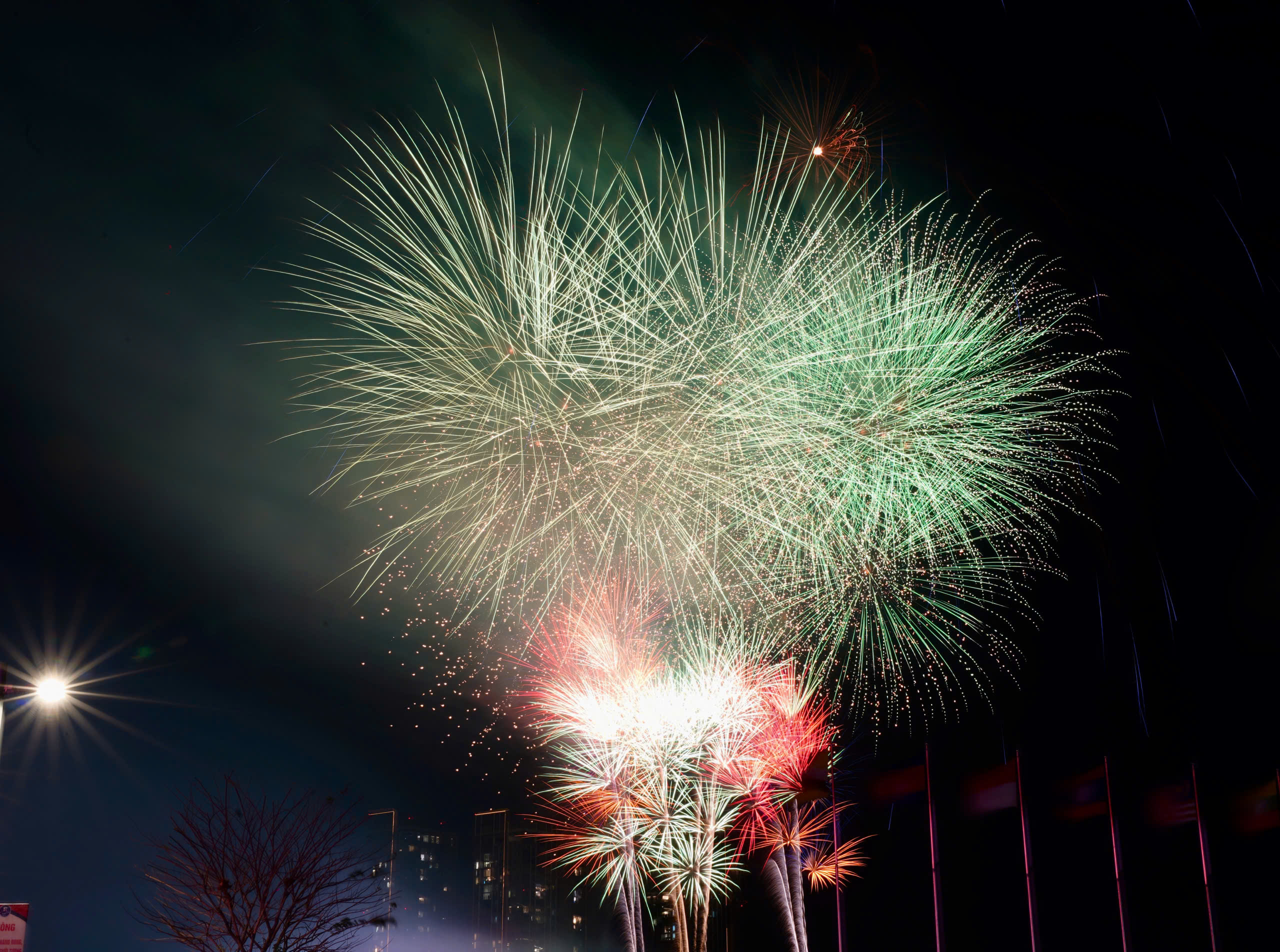 Loạt pháo hoa kéo dài 15 phút với nhiều hiệu ứng ánh sáng.