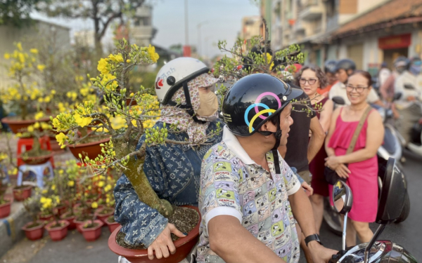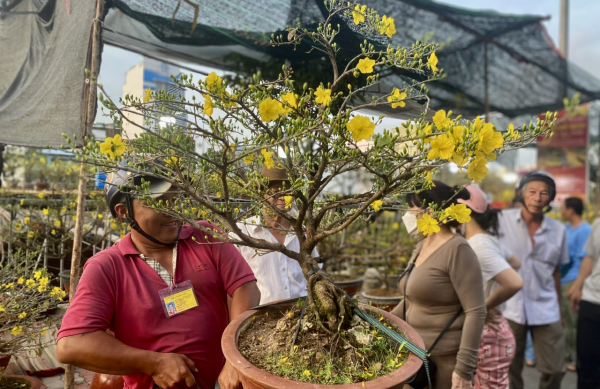 Sau khi dọn dẹp nhà cửa, người dân TP Hồ Chí Minh ra chợ “trên bến dưới thuyền” tậu cho gia đình chậu mai ưng ý đón Tết.
