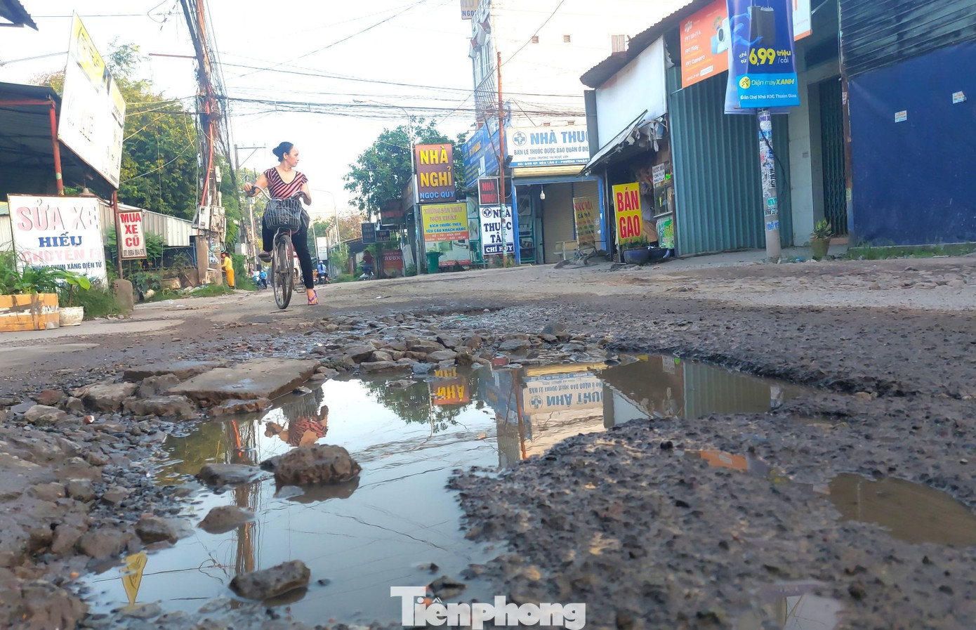 Ngày 26/11, phóng viên báo Tiền Phong ghi nhận đường Thuận Giao 17, phường Thuận Giao, TPHCM xuống cấp nghiêm trọng, chằng chịt ổ voi.