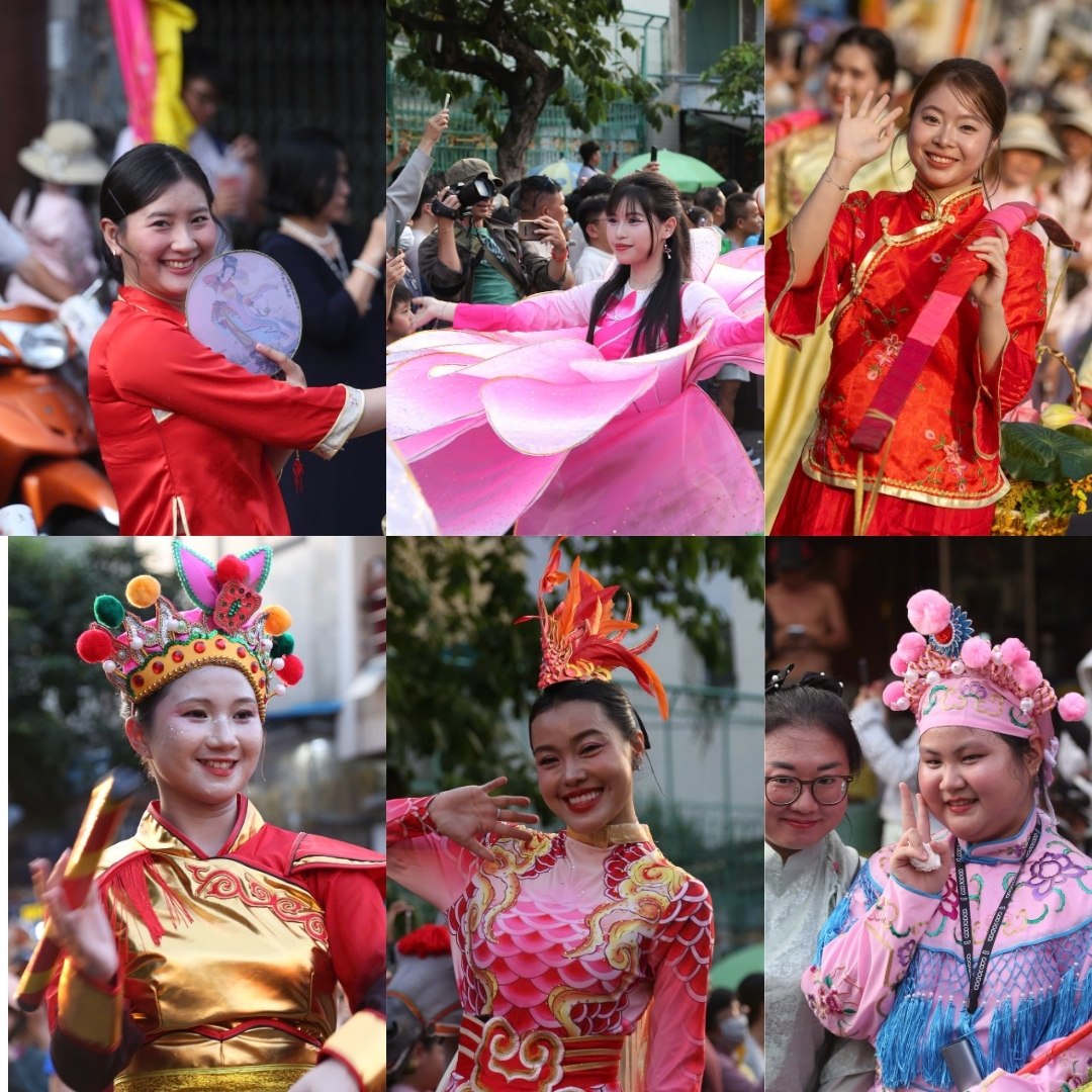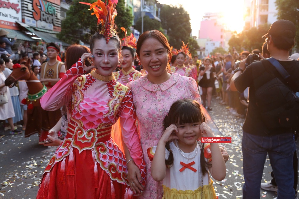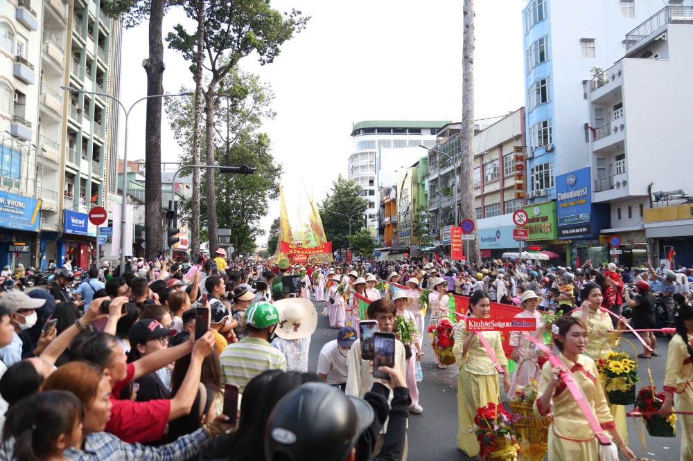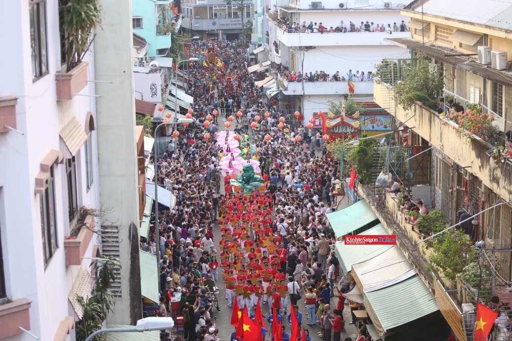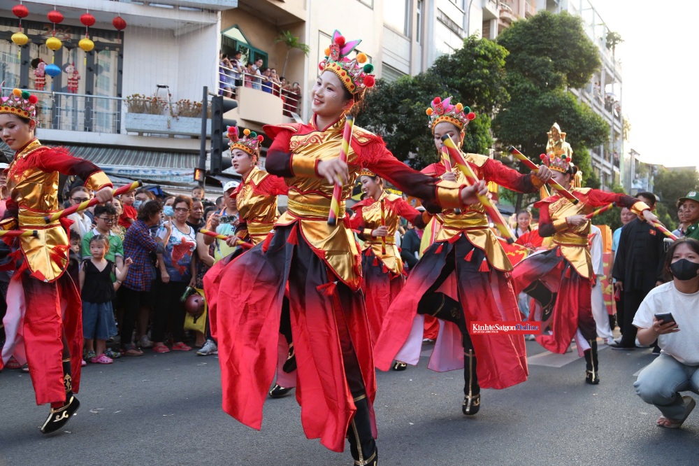 Đoàn diễu hành quy tụ hàng trăm người trong trang phục sặc sỡ, hóa thân thành tiên nữ, Thần Tài, ông Địa… cùng các đội múa lân, múa rồng. Theo ban tổ chức, chương trình diễu hành đường phố có khoảng 1.200 diễn viên, nghệ nhân và các đoàn lân, sư, rồng, đại la cổ… tham gia.