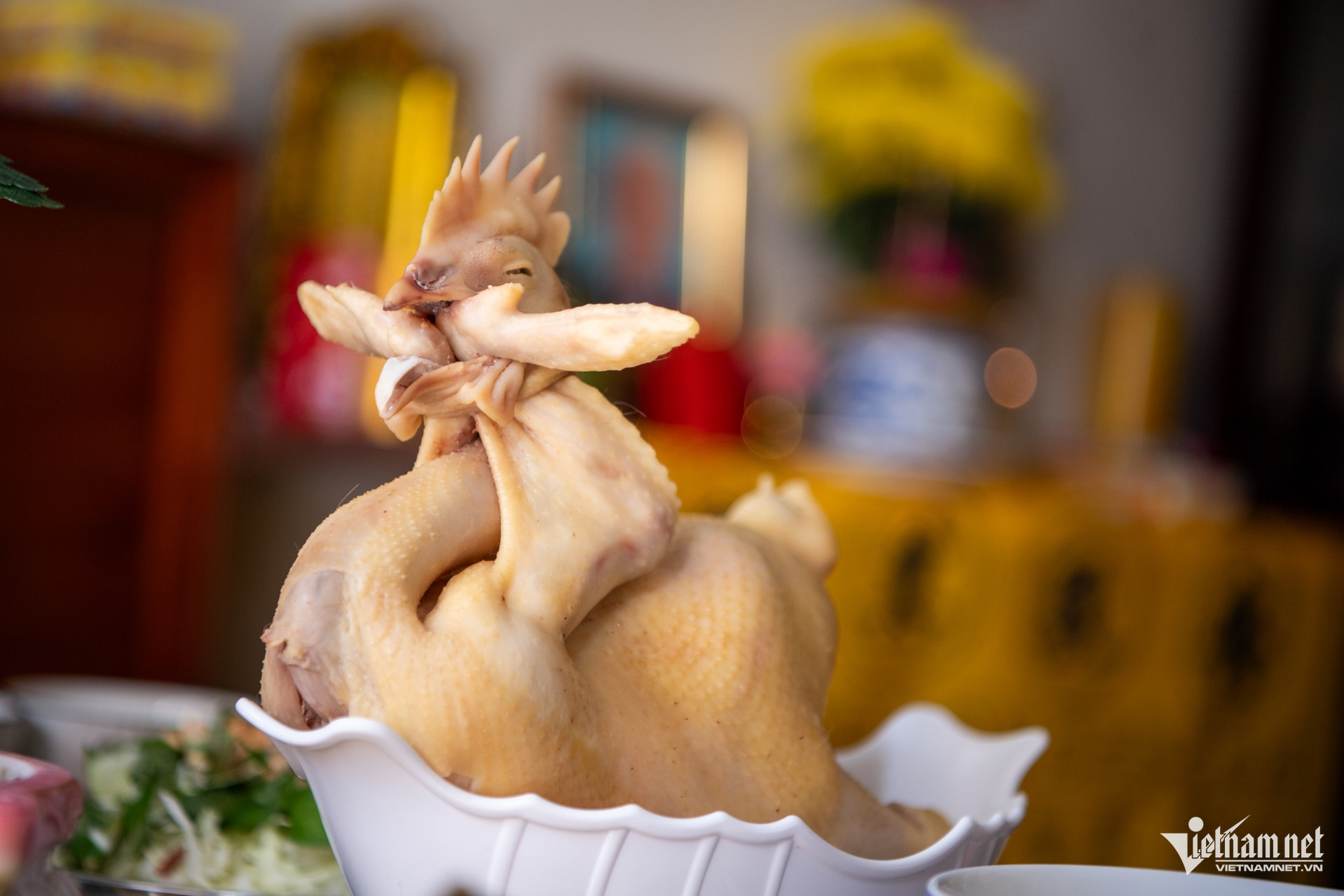 Gà được lựa chọn kỹ lưỡng, bày biện trang trọng, thể hiện lòng thành kính của con cháu và gửi gắm ước vọng về một năm mới bình an, hanh thông, đủ đầy.
