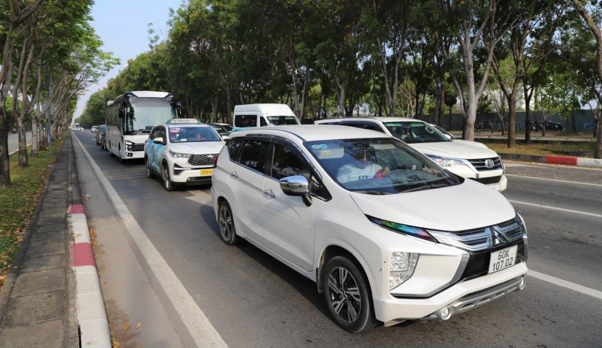 Tại các cửa ngõ kết nối phía Đông như: Đại lộ Mai Chí Thọ, Đại lộ Võ Nguyên Giáp, cao tốc Long Thành - Dầu Giây, trong chiều mùng 5 Tết, lượng xe cộ đi lại ở mức vừa phải. Dù mật độ phương tiện đông hơn ngày thường nhưng các dòng xe vẫn di chuyển nhanh chóng, nhịp nhàng.