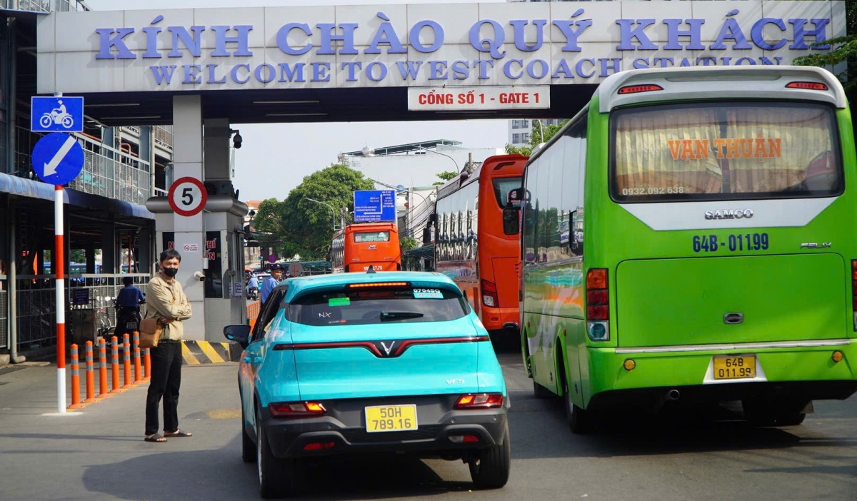 Bến xe Miền Tây tấp nập phương tiện ra vào.