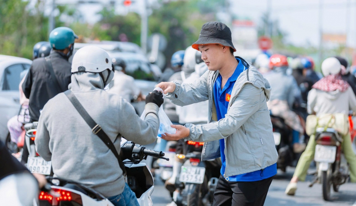 Tại nhiều cửa ngõ, người đi đường được phát nước uống miễn phí.
