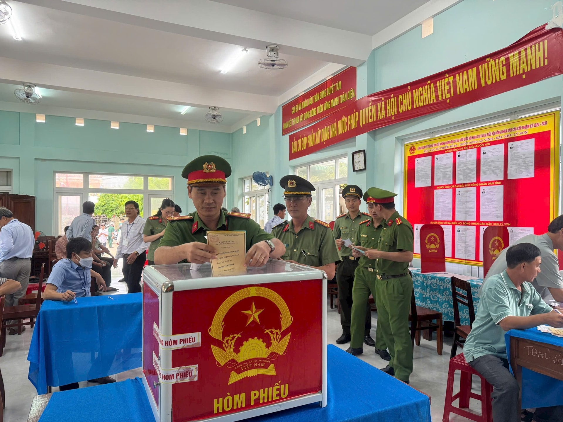 Lực lượng Công an Đặc khu Lý Sơn tham gia bỏ phiếu.