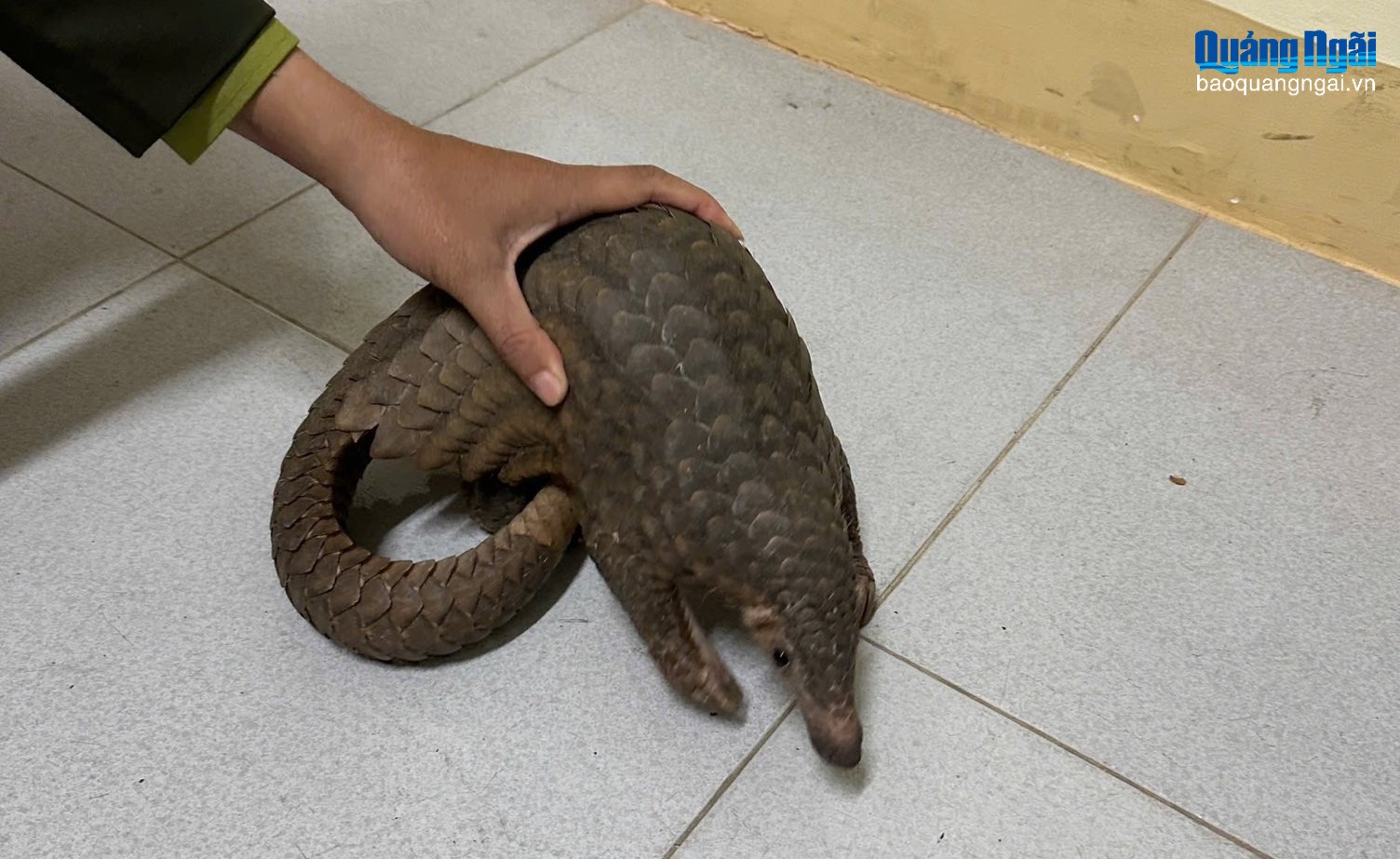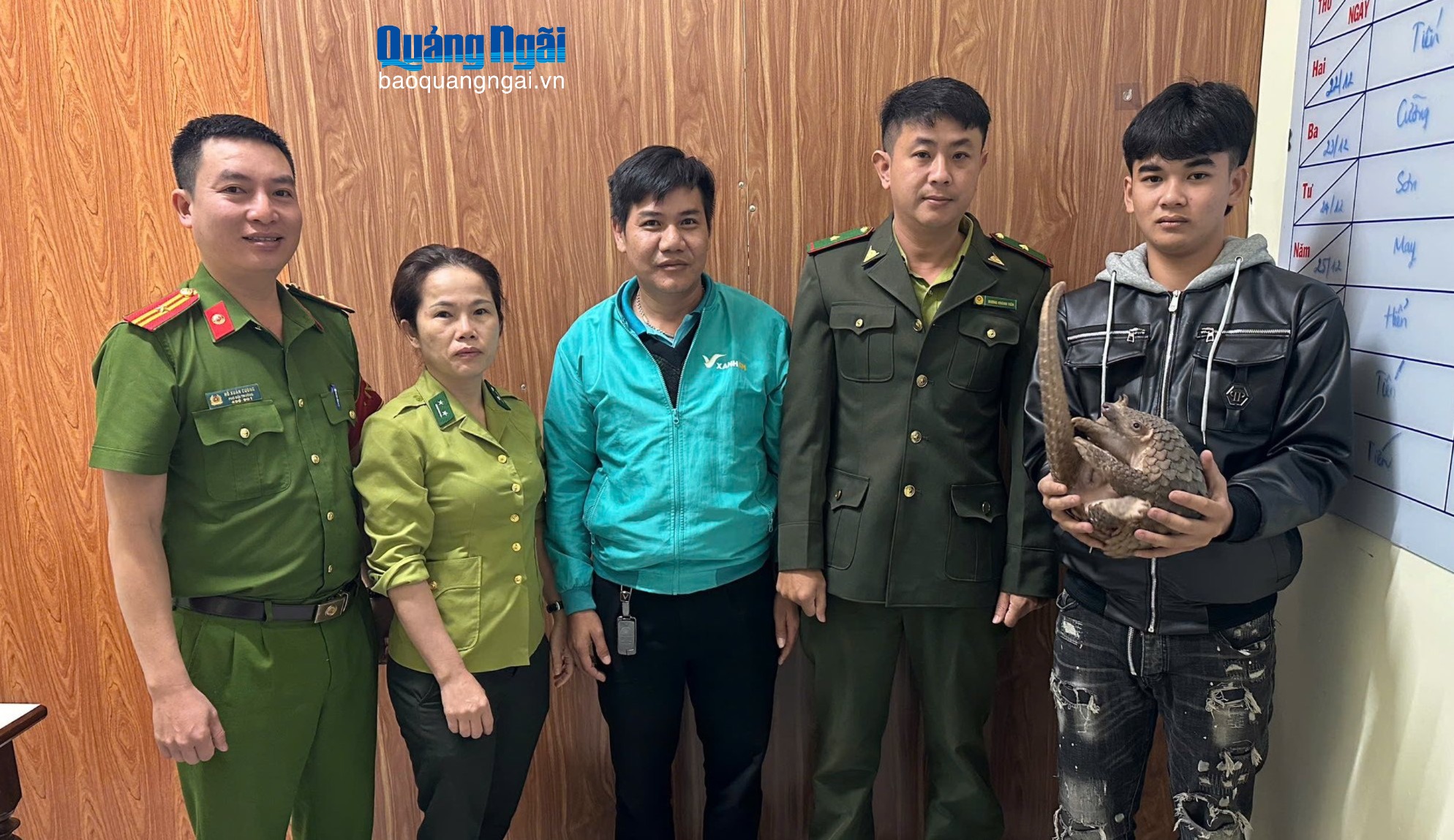 Giao nộp cá thể tê tê cho lực lượng chức năng. Ảnh: ĐVCC