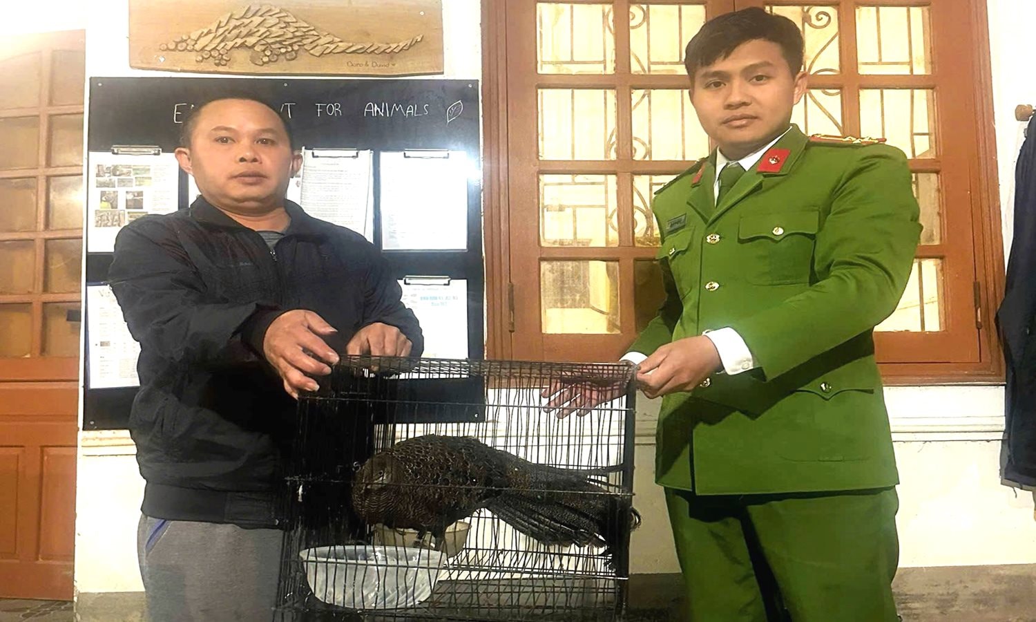 Cụ thể, trong quá trình xuống cơ sở tuyên truyền pháp luật, phổ biến các quy định về bảo vệ rừng và động vật hoang dã, lực lượng Công an xã đã được ông Hạ Giống Xênh (SN 1970, trú tại bản Phù Quặc 2) chủ động giao nộp cá thể gà tiền mặt vàng mà gia đình đang nuôi giữ.
