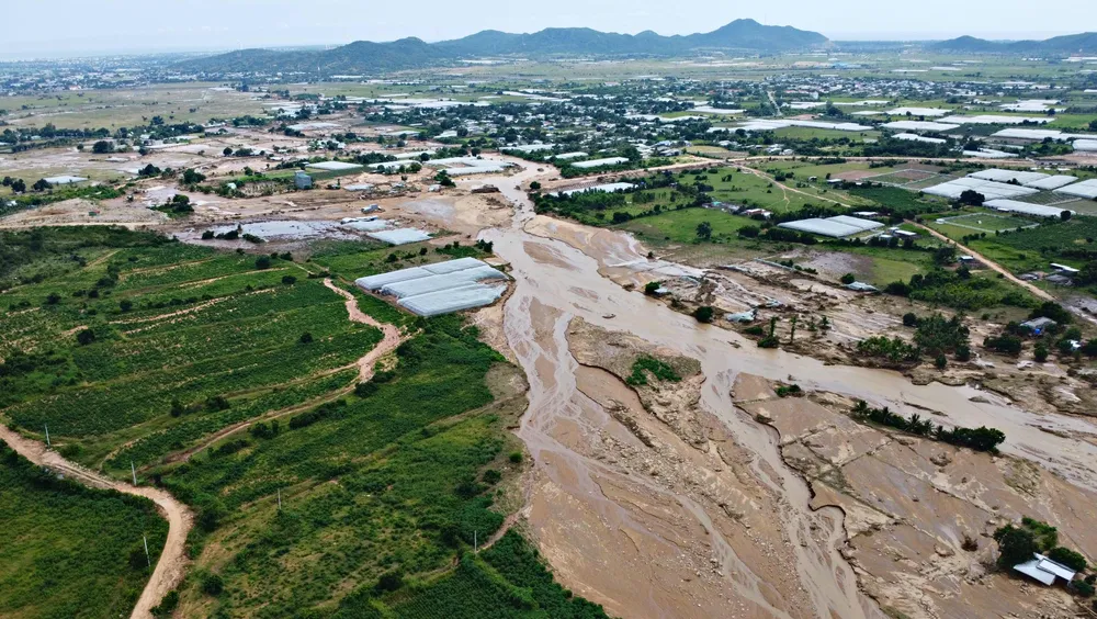 Quang cảnh nhà cửa, vườn tược của người dân bị thiệt hại khi sự cố hồ nước trên núi Tân Lai bị vỡ. Ước tính tổng diện tích bị ảnh hưởng ước tính hơn 100 ha. Dù công tác khắc phục đã được triển khai khẩn trương, nhưng khối lượng công việc còn rất lớn. Nhiều nhà dân vẫn bị đất, cát, bùn lấp lên một lớp dày. Hệ thống điện, nước, đường giao thông bị hư hại cần thời gian dài để sửa chữa. Bên cạnh đó, cơn bão số 13 đã cận kề, người dân lo lắng vì nguy cơ nước ngập lụt vẫn có thể xảy ra.