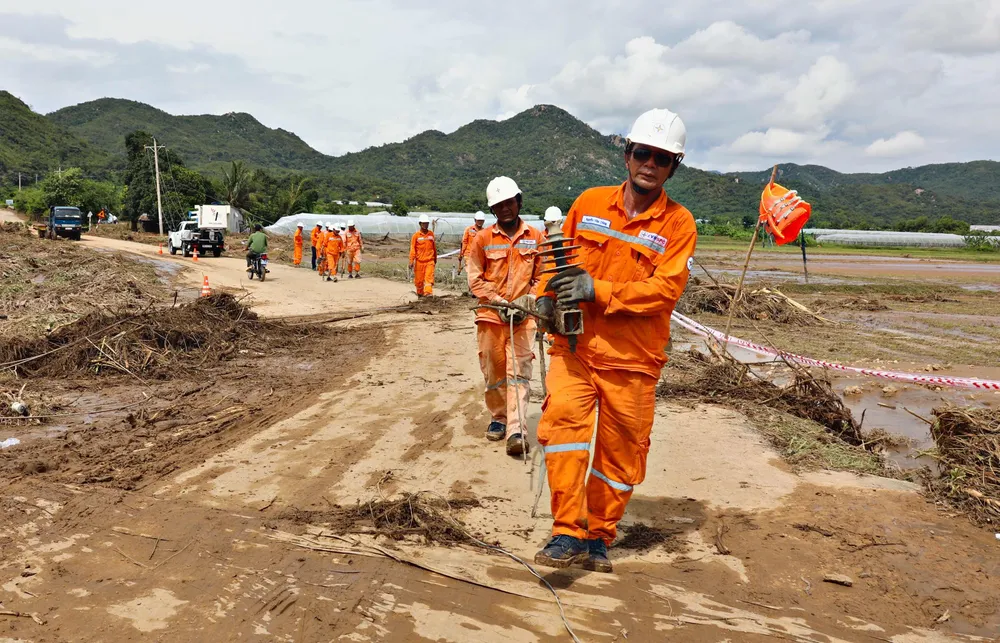 Nhân viên điện lực, viễn thông có mặt ngay sau sự cố lũ quét để nối lại đường truyền cho bà con sử dụng.